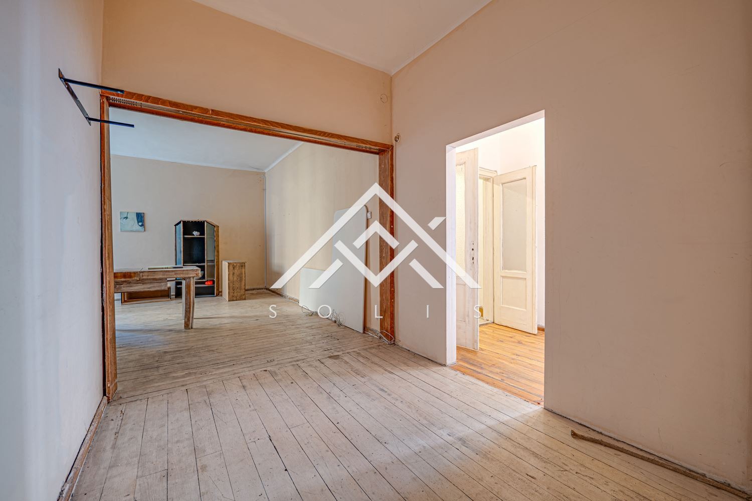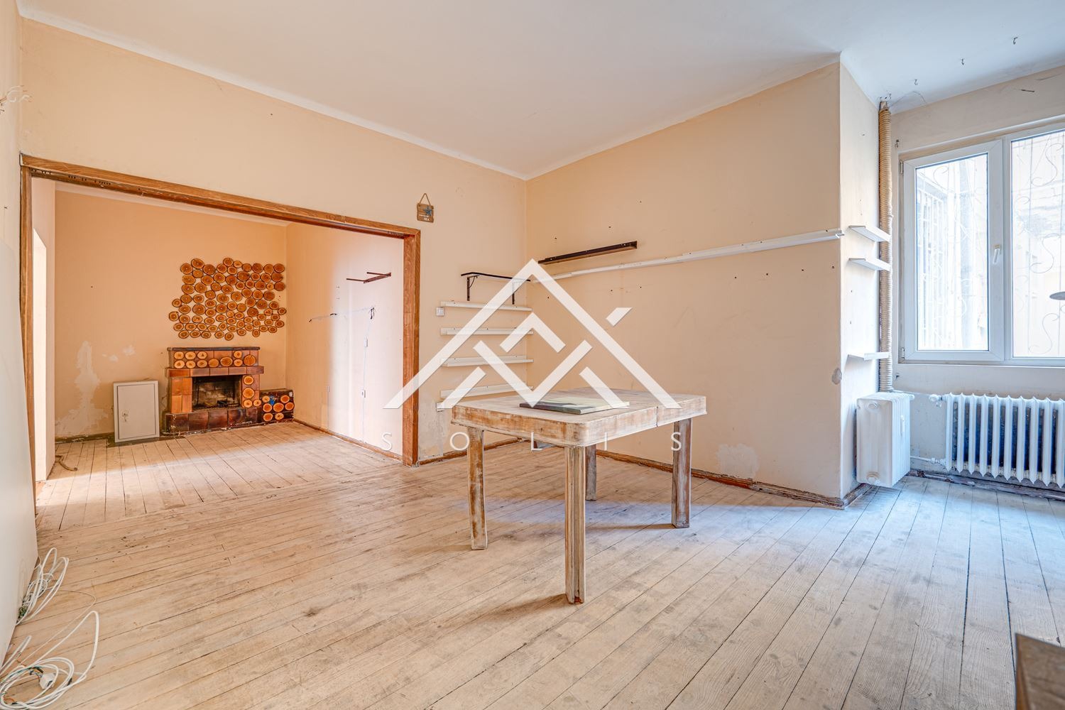 Височината на таваните създава усещане за обем и позволява разнообразни интериорни решения. Запазено е естествено дървено дюшеме, а камината в дневната оформя ясен архитектурен акцент. Пространството може да бъде преустроено в апартамент с две спални, както и в представителен офис, кантора, медицински или консултативен кабинет.