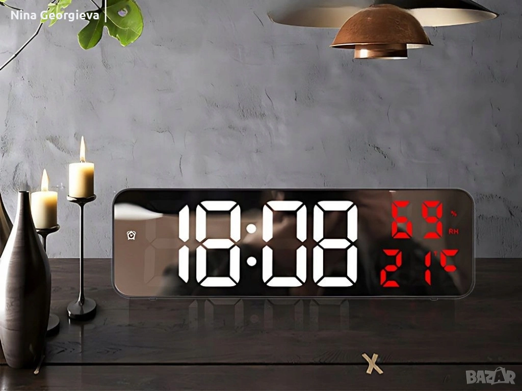 Функции: Час, дата, температура (°C/°F), аларма, отлагане, ниво на влажност;