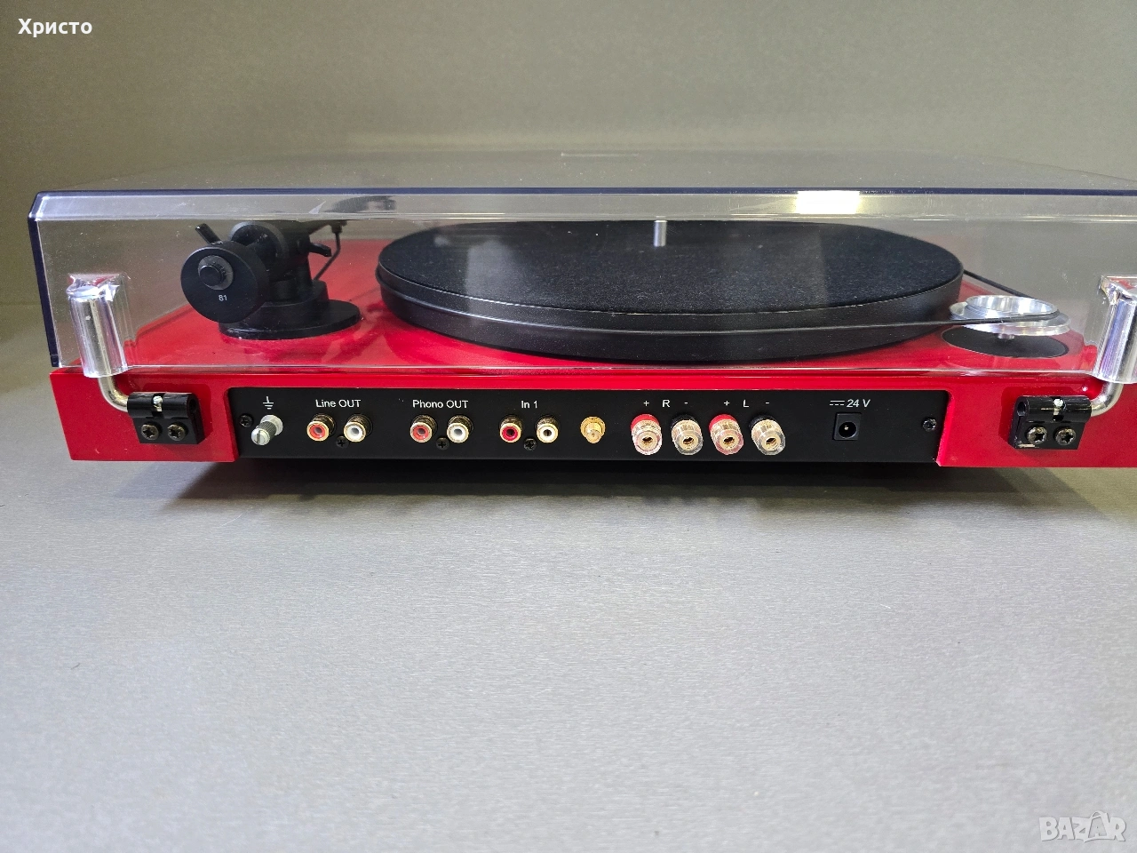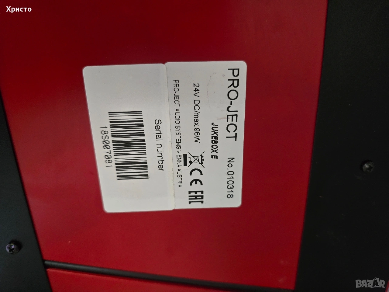 Pro-Ject Juke Box E е система "всичко в едно" (all-in-one), базирана на грамофон. Ето най-важното за него: Какво представлява: Това е грамофон, който има вграден усилвател и Bluetooth приемник. Как работи: Не ви трябват отделни устройства или сложни настройки. Просто го включвате в контакта и към него свързвате директно тонколони. Функции: Слушане на винилови плочи. Стриймване на музика от телефон чрез Bluetooth. Възможност за свързване на друг външен източник чрез линеен вход (line in). Усилвател (Amplifier) Мощност: 2 x 50 W при 4 Ohm. Изходи: За тонколони (Speaker Out), фиксиран линеен изход (Line out) и грамофонен изход (Phono out). Входове: Bluetooth (2.1, EDR) и 1 x аналогов линеен вход (RCA). Екстри: Вграден дисплей с висок контраст Размери (Ш x В x Д): 415 x 118 x 334 мм. Тегло: 5 кг. Консумация: Максимум 110 W предлага се с адаптер без дистанционно