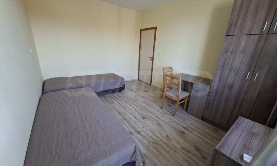 три самостоятелни спални една с двойно легло и две с по две единични легла (хотелски тип, с възможност за обединяване);