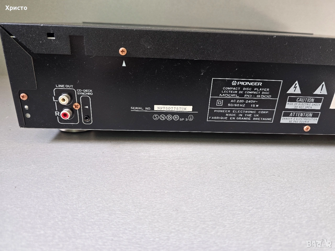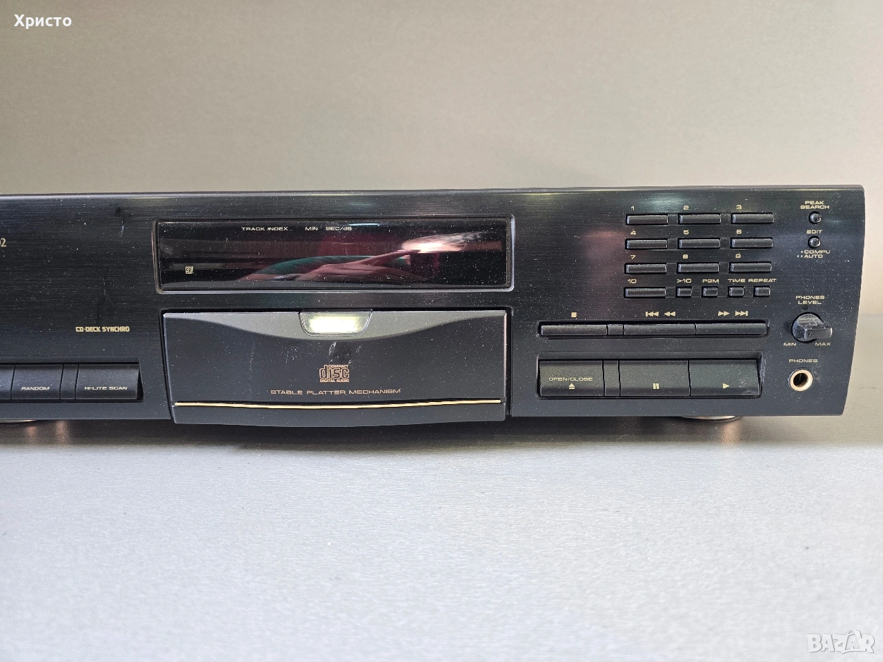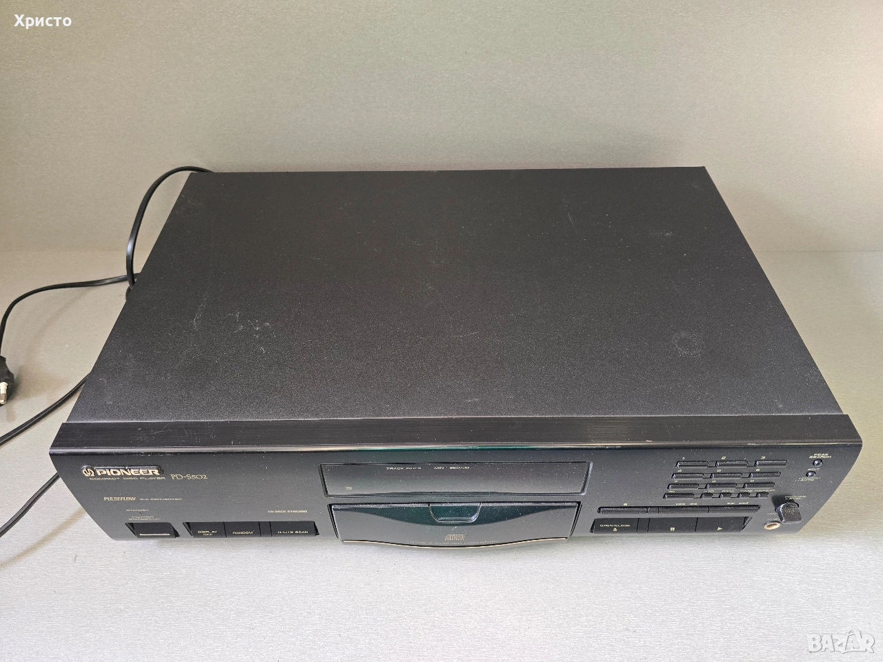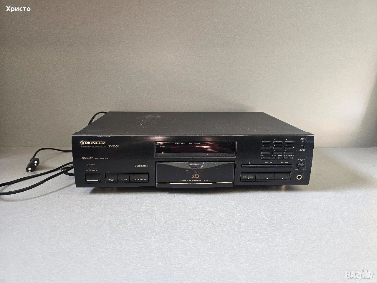 Pioneer PD-S502 Π΅ ΠΊΠ»Π°ΡΠΈΡΠ΅ΡΠΊΠΈ CD ΠΏΠ»Π΅ΠΉΡΡ ΠΎΡ Π½Π°ΡΠ°Π»ΠΎΡΠΎ Π½Π° 90-ΡΠ΅ Π³ΠΎΠ΄ΠΈΠ½ΠΈ (ΠΎΠΊΠΎΠ»ΠΎ 1993 Π³.), ΠΈΠ·Π²Π΅ΡΡΠ΅Π½ Π³Π»Π°Π²Π½ΠΎ ΡΡΡ ΡΠ²ΠΎΡΡΠ° ΡΠΏΠ΅ΡΠΈΡΠΈΡΠ½Π° "Stable Platter" ΠΌΠ΅Ρ