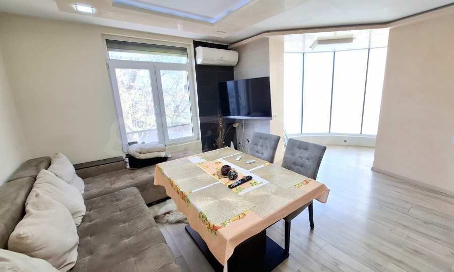 Апартаментът е напълно обзаведен и оборудван с всичко необходимо за живеене като мебели и ел. уреди.