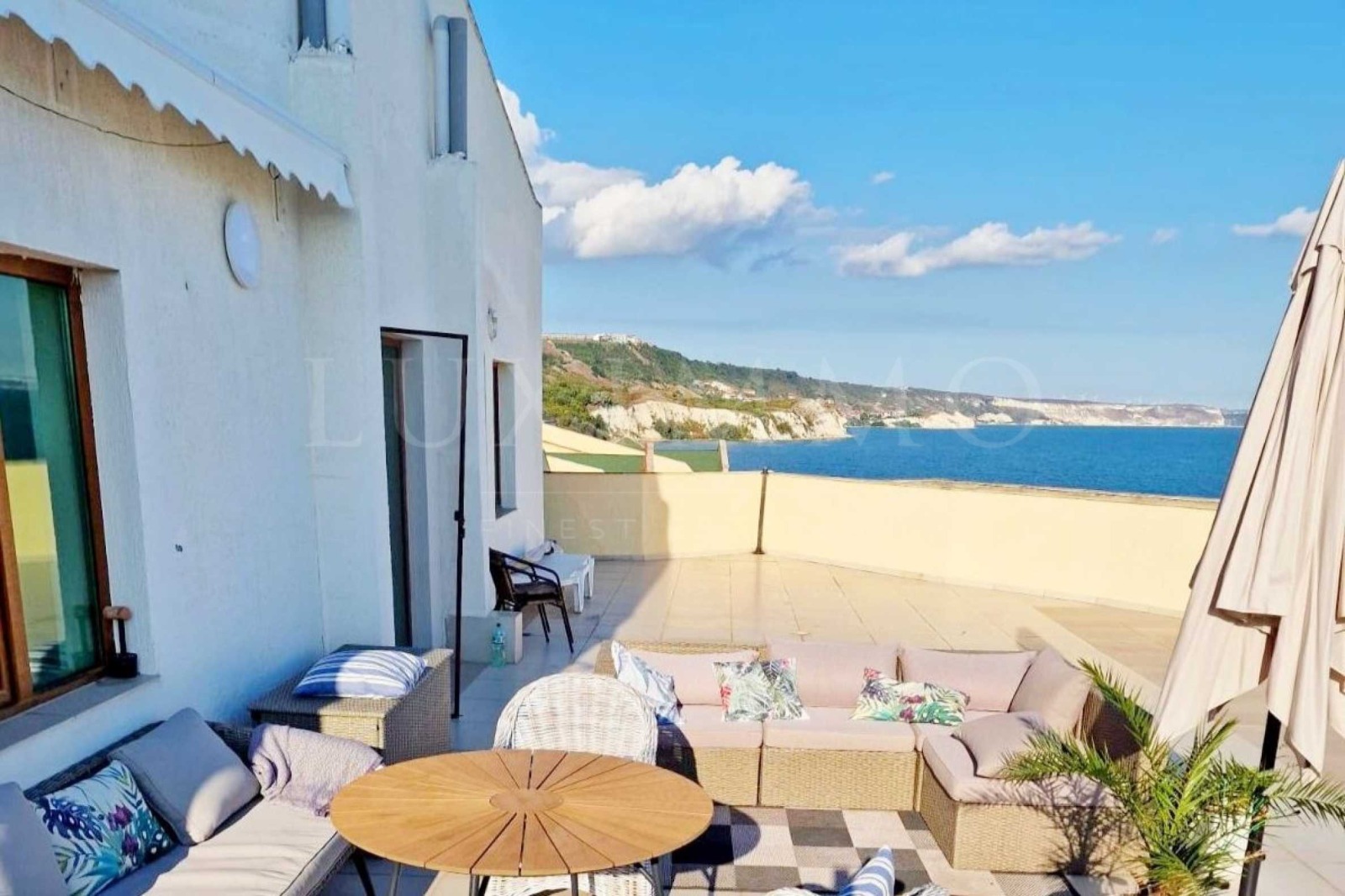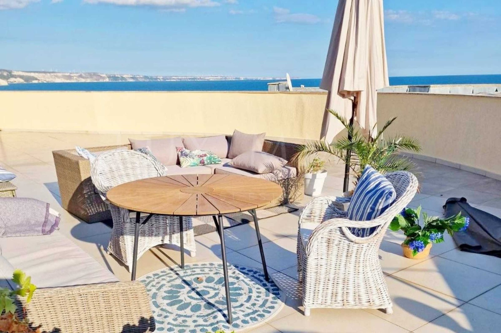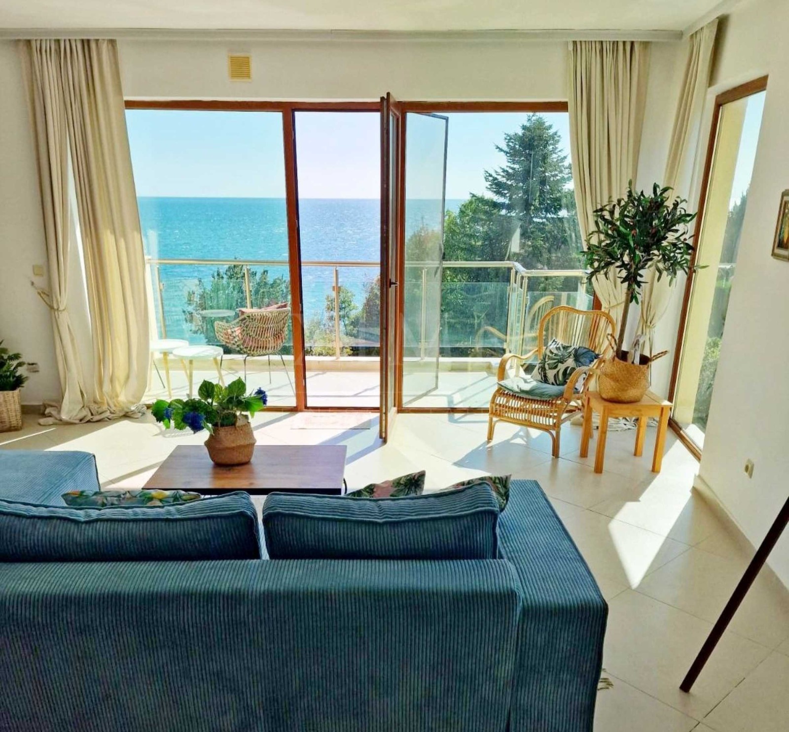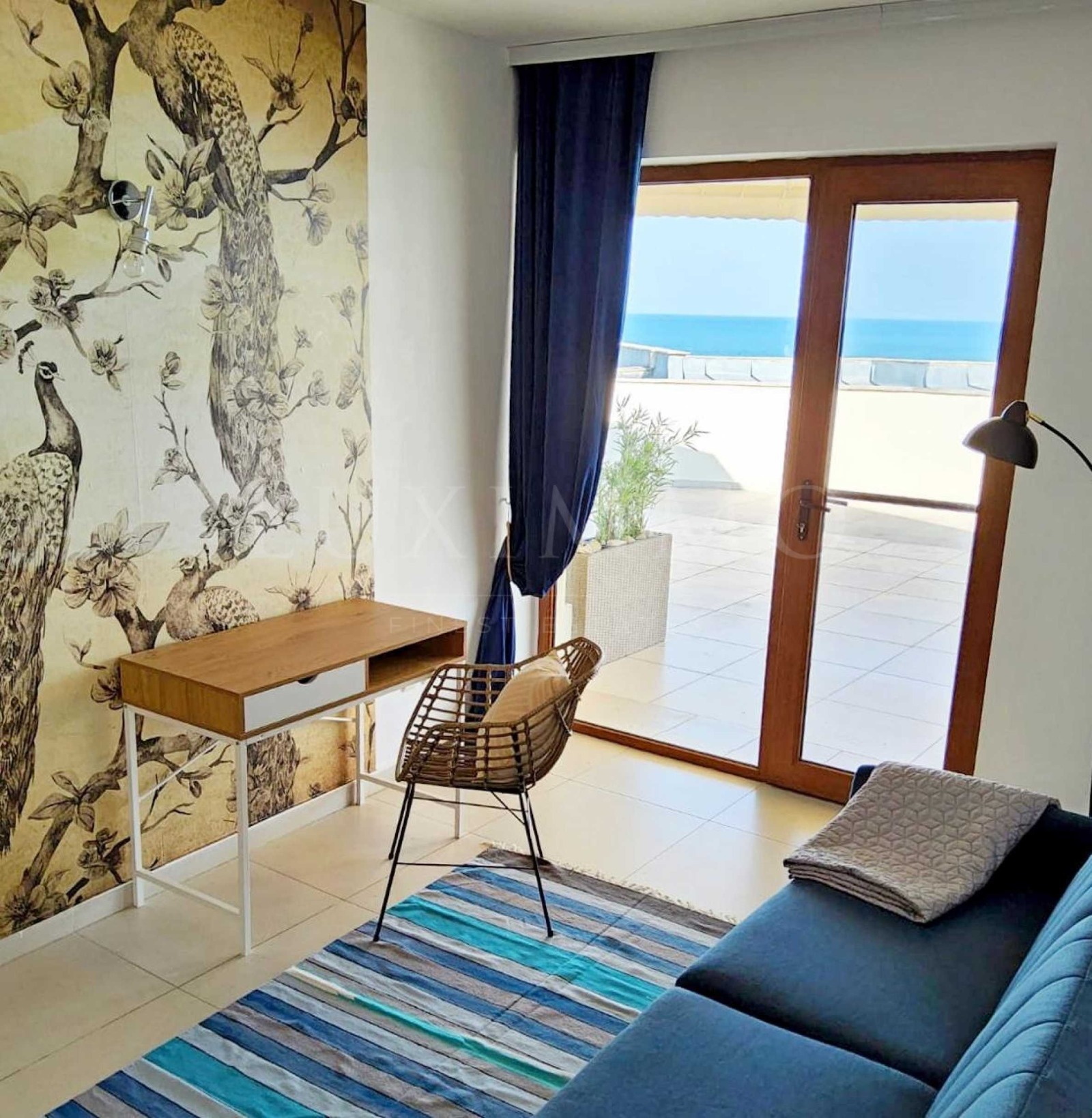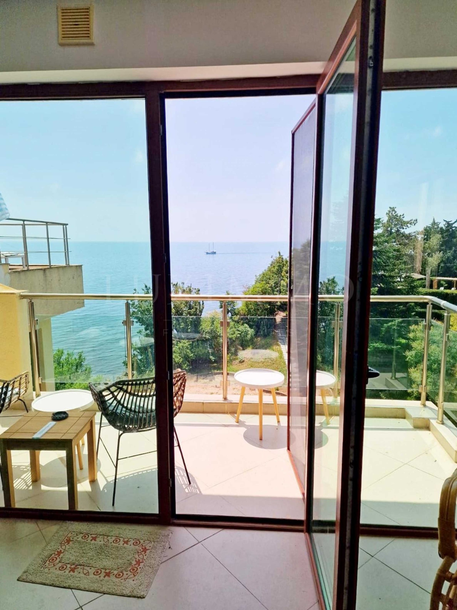 Представяме панорамен тристаен апартамент с невероятна покривна тераса в поддържан затворен комплекс, разположен на първа линия от морския бряг между Балчик и Каварна, в м-т Иканталъка. Районът е богат на природни забележителности, архитектурни обекти, голф игрища, СПА комплекси и ресторанти. Топ локация в живописен залив с пасторални пейзажи, само на метри от плажа.