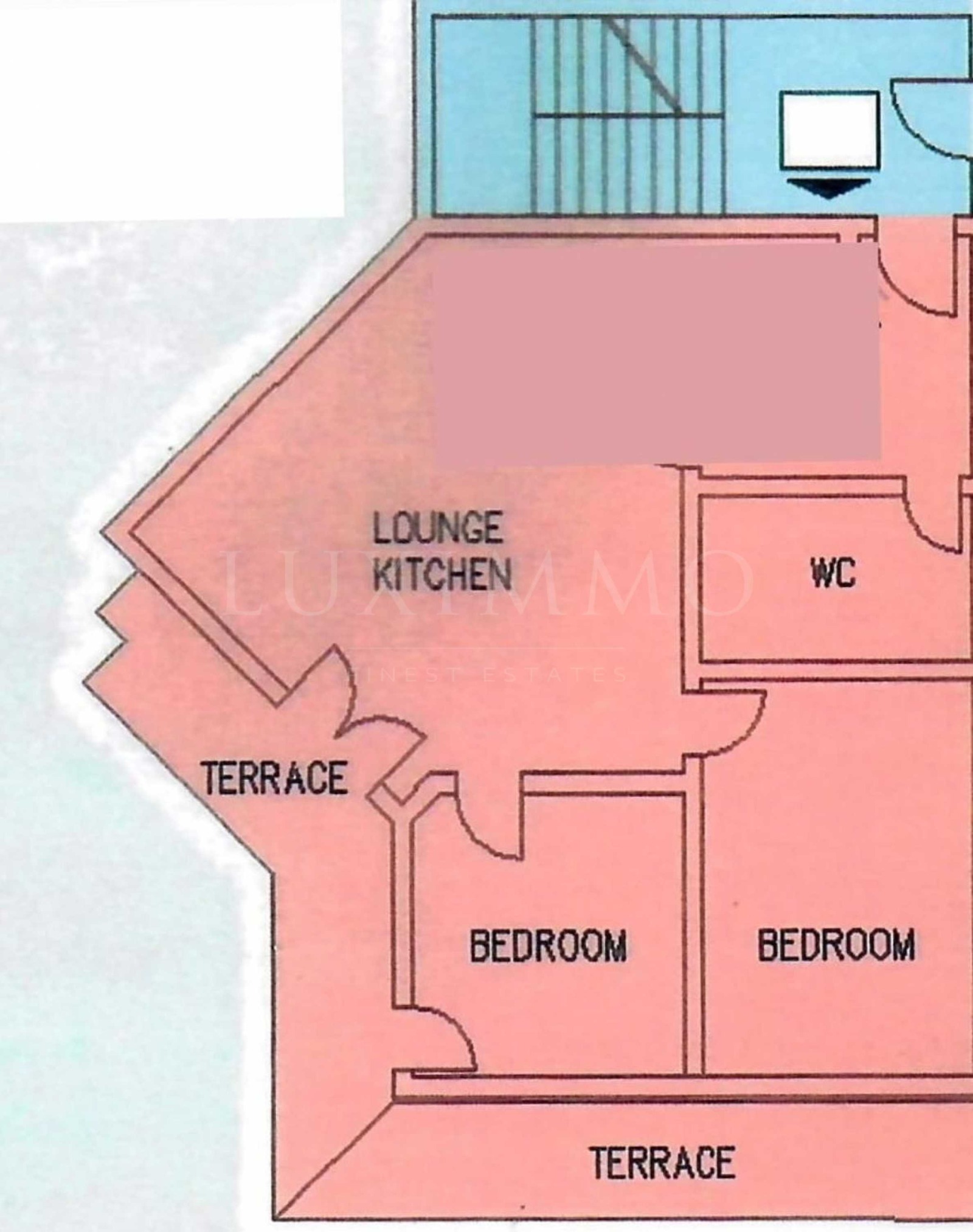 Жилището с обща площ от 132 кв.м е разположено на 4-ти етаж с прекрасна гледка море от всички стаи.