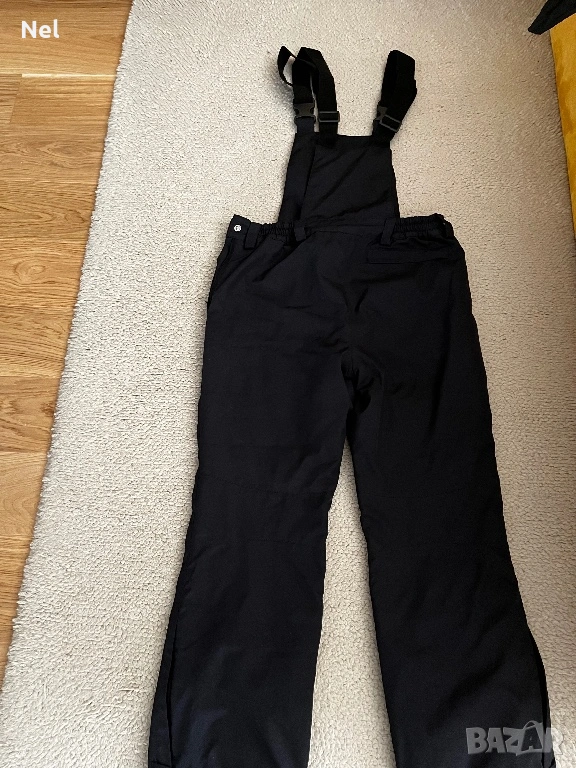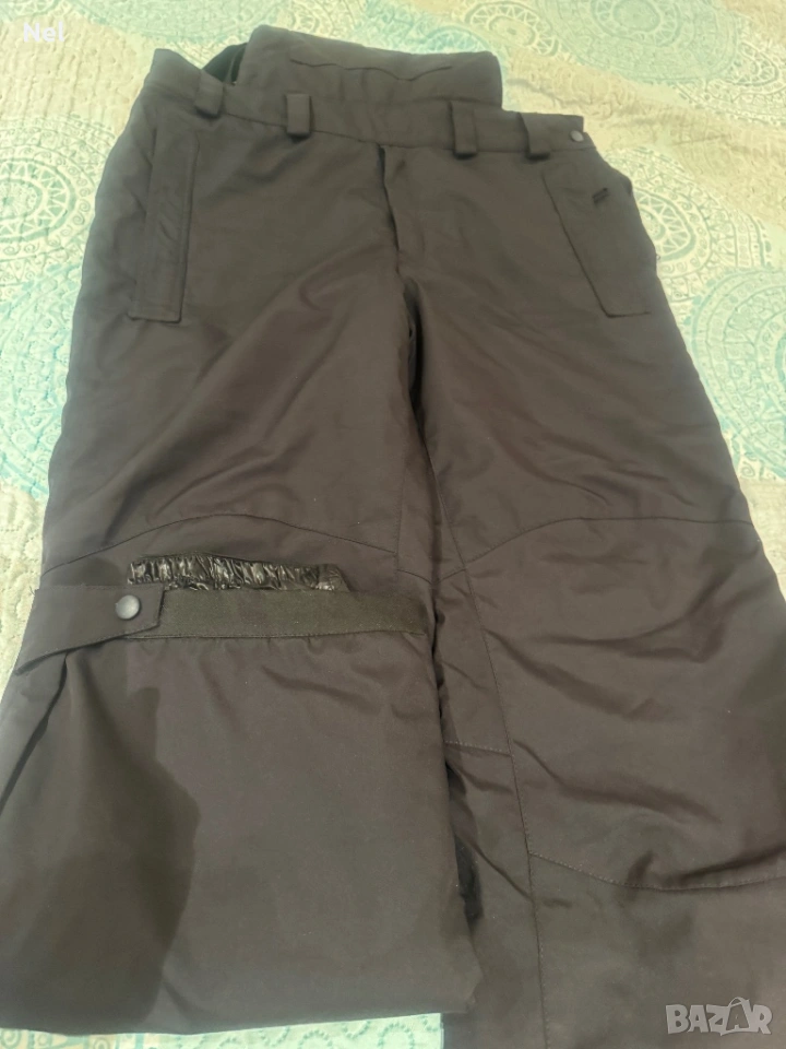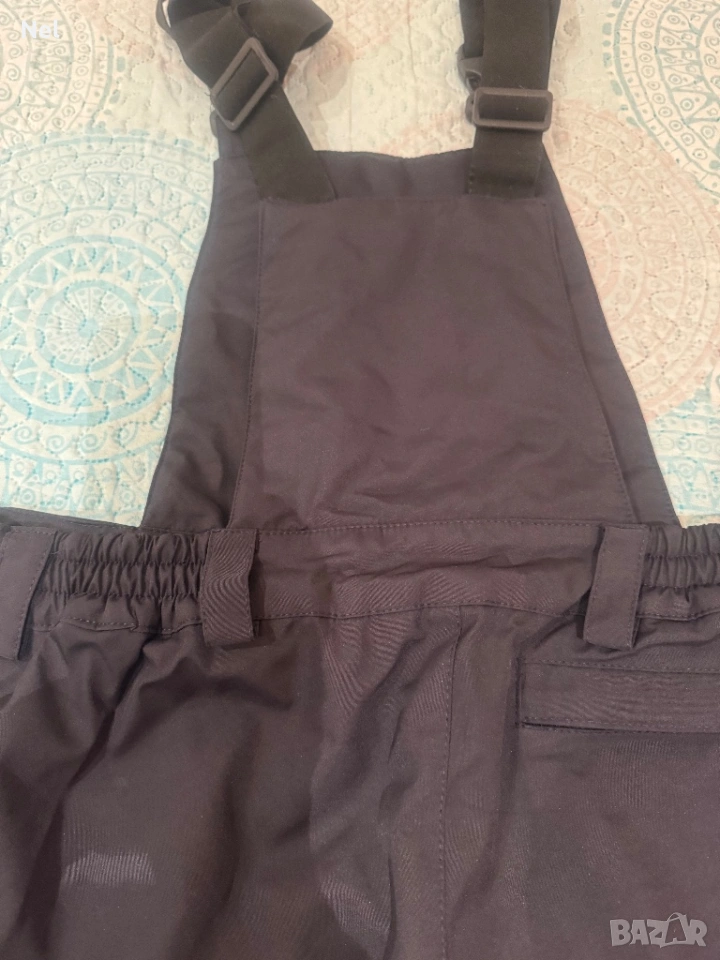 С платки отпред и отзад над кръста, регулируеми презрамки, 3 джоба. Цип отпред и отстрани за закопчаване. Допълнителни крачоли с ластик и силикон.
