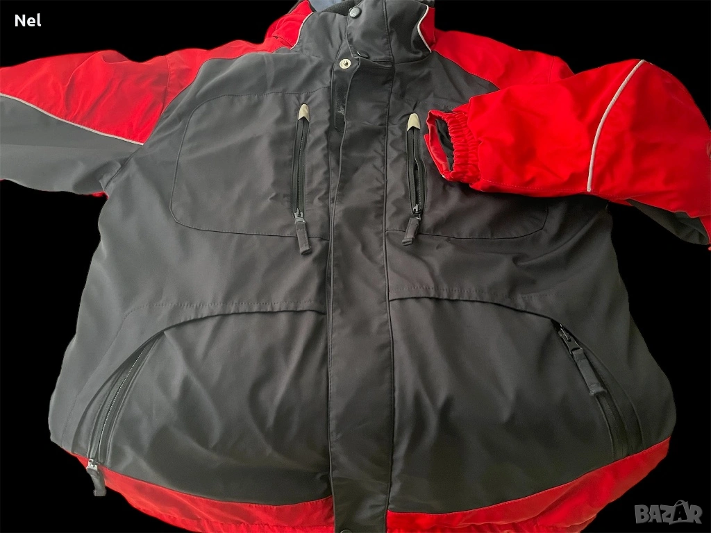 Има 4 външни джоба с цип и два вътрешни, сваляща се качулка, отпред има квадратно лого с име на фирма и цената е съобразена
