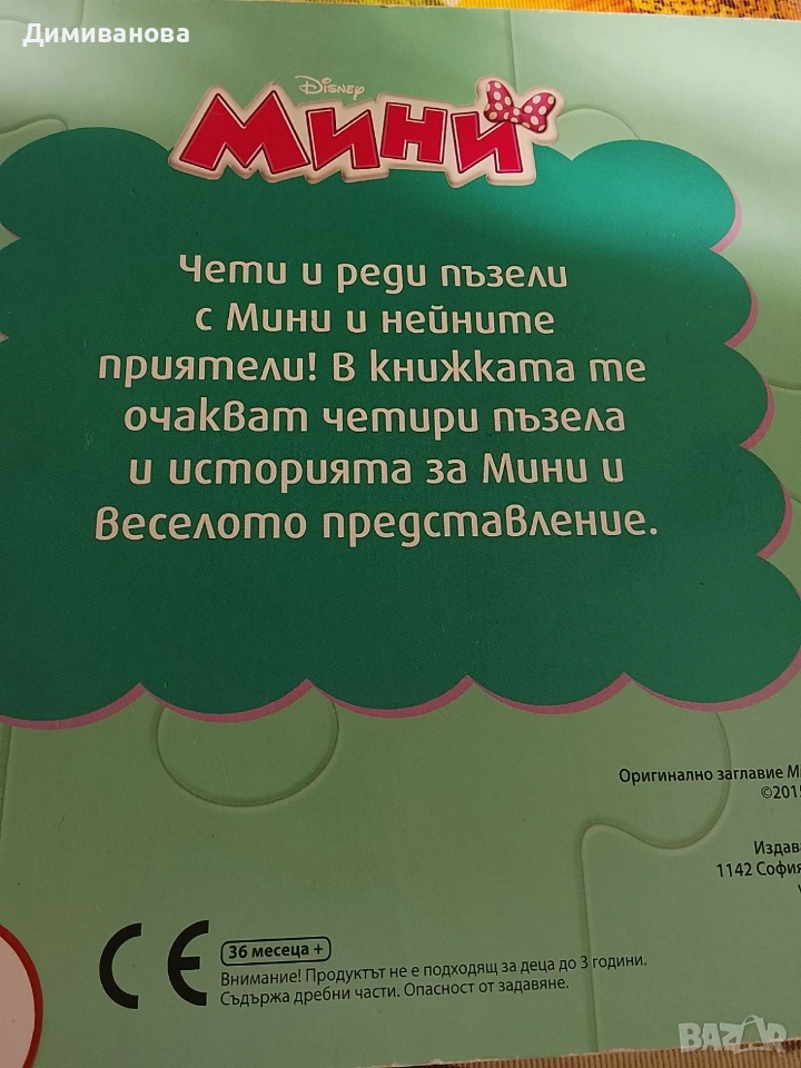 Като цяло са запазени, няма липсващи части. Книжката с Мини има няколко забележки. Основната е на предпоследната страница. Имаше етикет и малката реши, че не трябва да е там, има снимка на страницата.