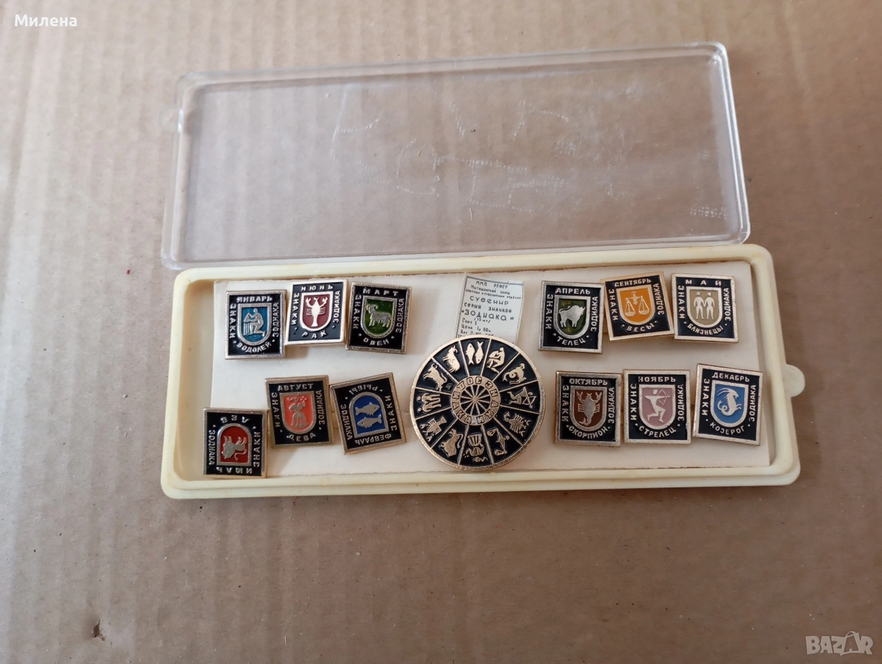 Продавам колекция съветски значки „Зодиакални знаци“, 13 броя, в оригиналната им опаковка. Нови, неупотребявани.
