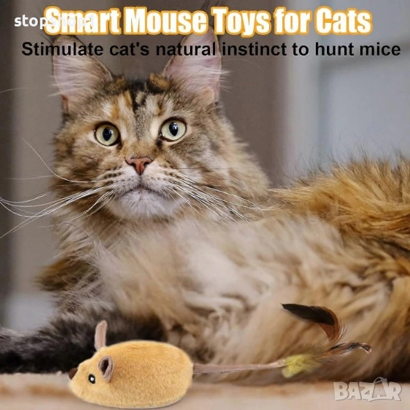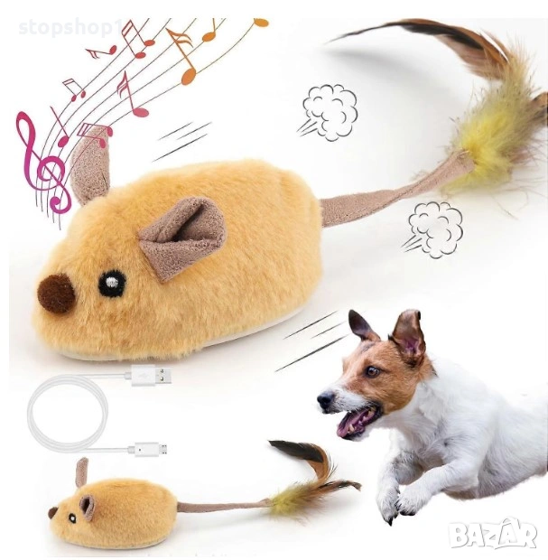 Интерактивна играчка за котки,кучета, движеща се играчка мишка,презареждаща се, със звук, до 120 мин