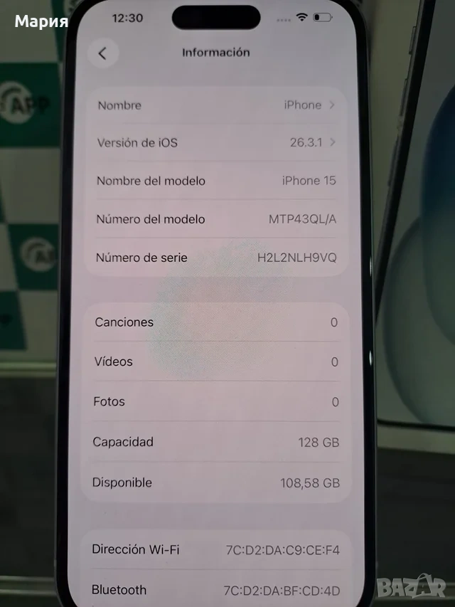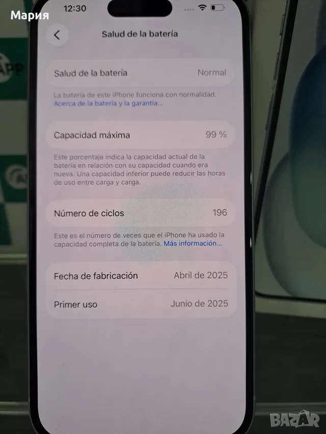 iPhone 15 128GB Живот на батерията 99% → Обява 54229483