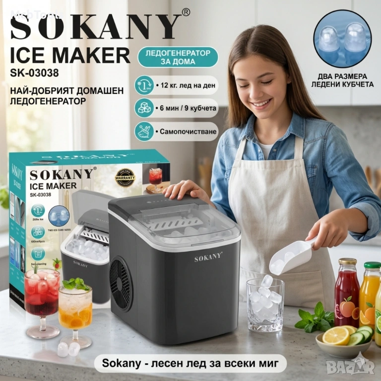 Ледогенератор 12 кг лед Sokany, Машина за лед