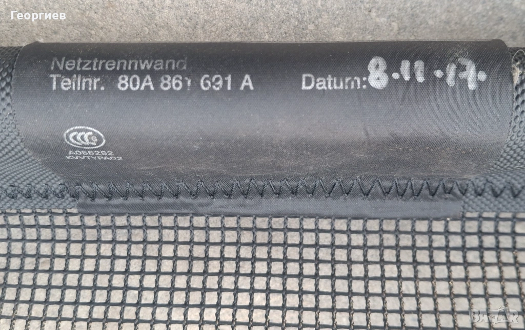 Както се вижда, едната е твърда и изцяло метална, другата е платняна и се навива на руло. OEM номер 80А 861 691А. Произведена е на 08.11.2017г.