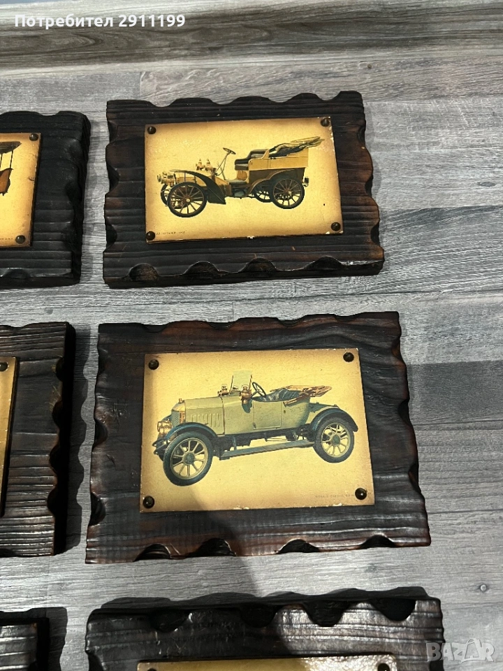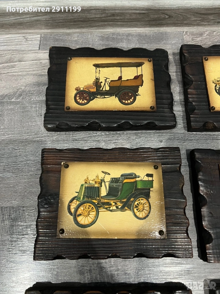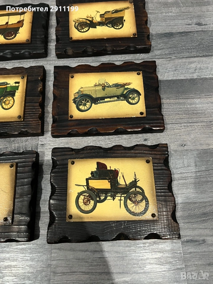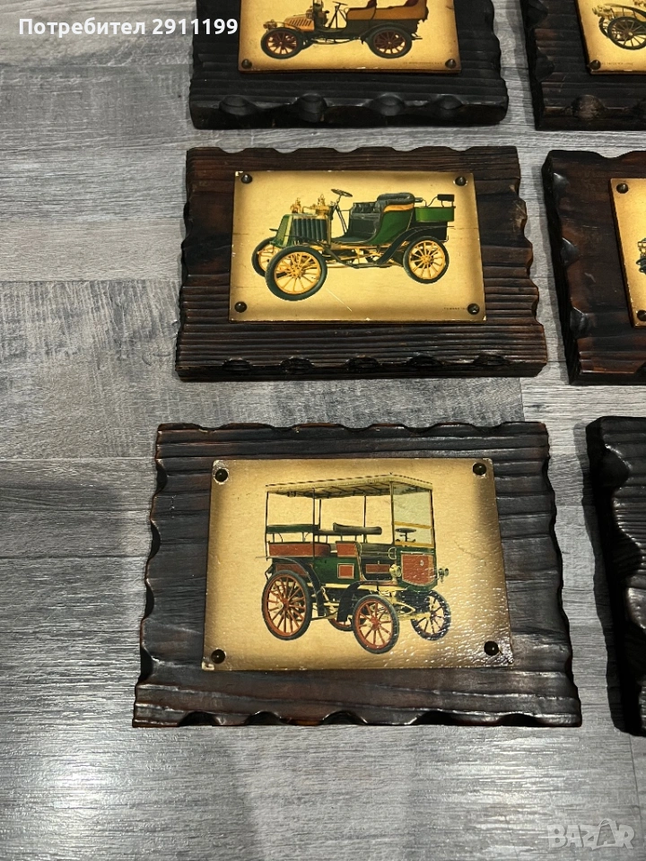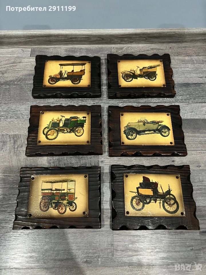 от шест антикварни картини с автомобили.