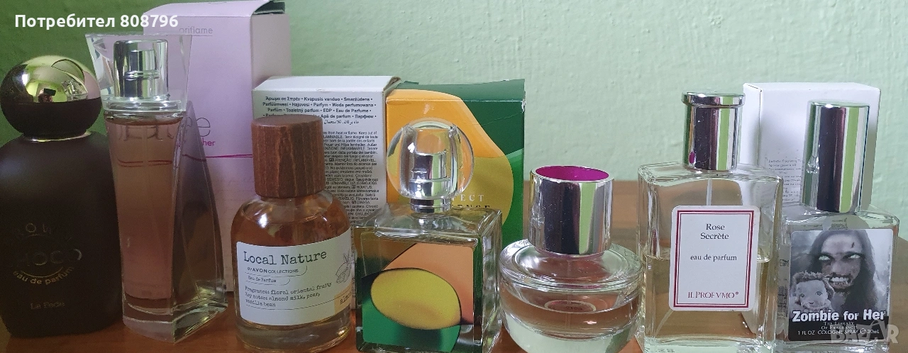 Здравейте! Разделям се с няколко бюджетни парфюмчета: 1.La Fede choco - 50 мл - 8 € 2.Оriflame Embrace her (спрян аромат - 50 мл - 10 € 3.Avon Local Nature Almond - 50 мл - 10 € 4.Avon Perfect Nonsense bamboozie- 50 мл - 8€ 5.Calvin Clein Downtown- 30 мл - 8€ 6.Il Profumo Rose Secrete- от 50 мл - 8 - 8€ 7.Demeter Zombie for her- от 30 мл - 10 €