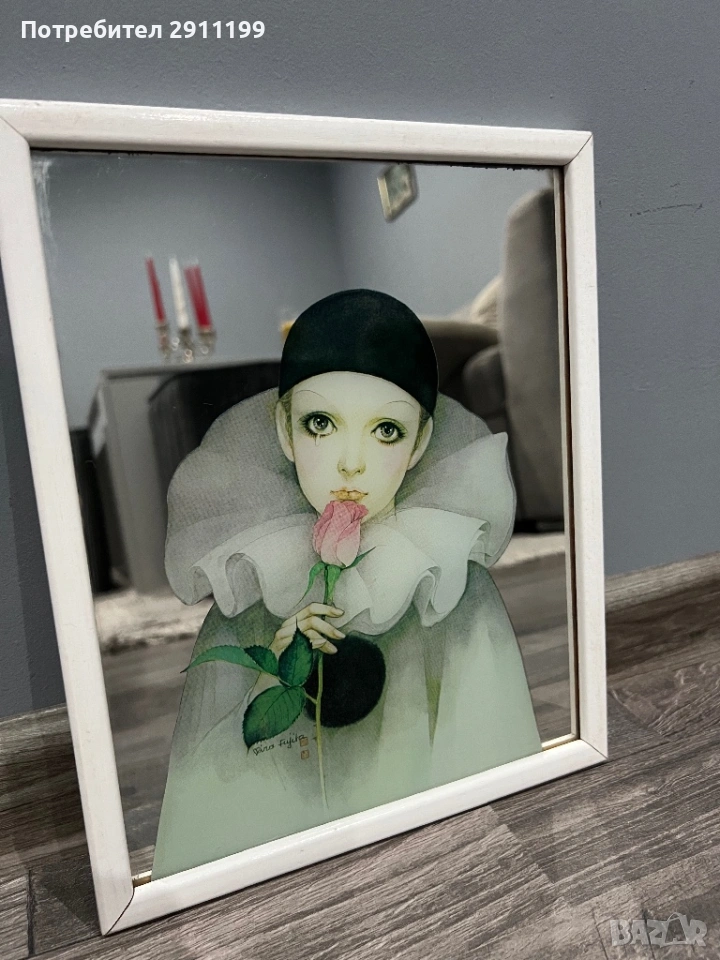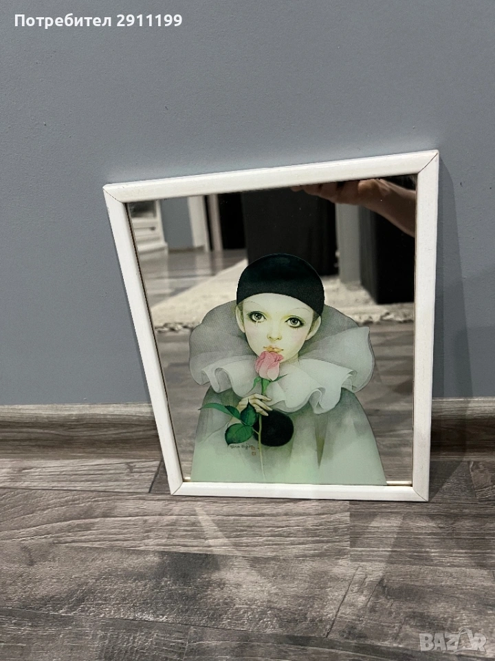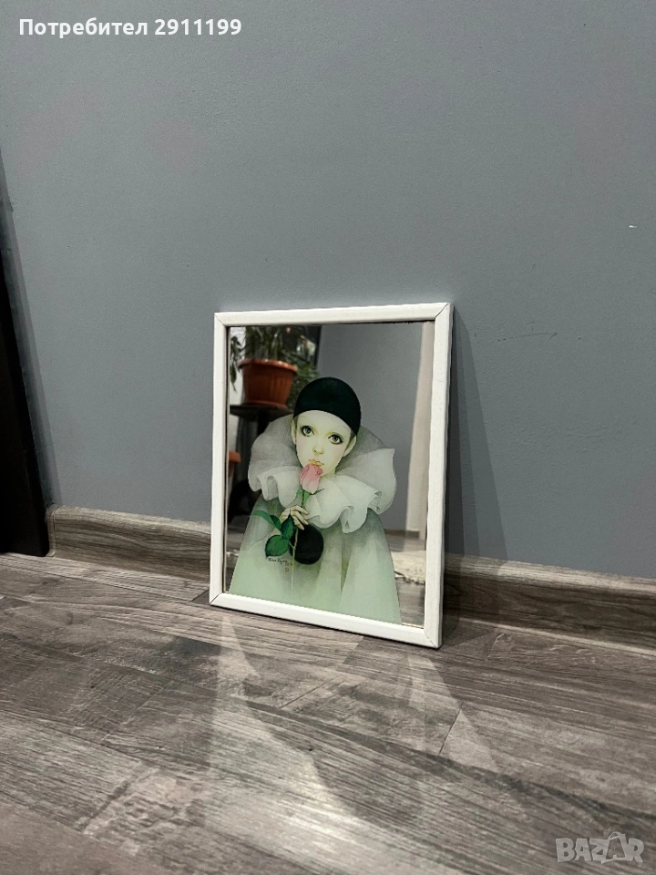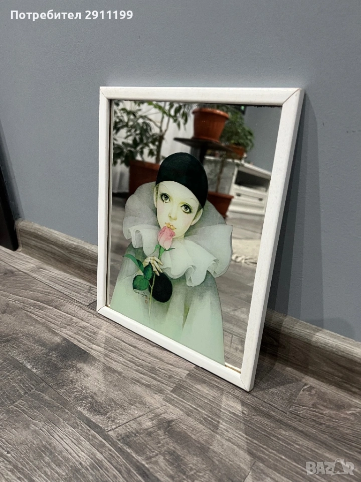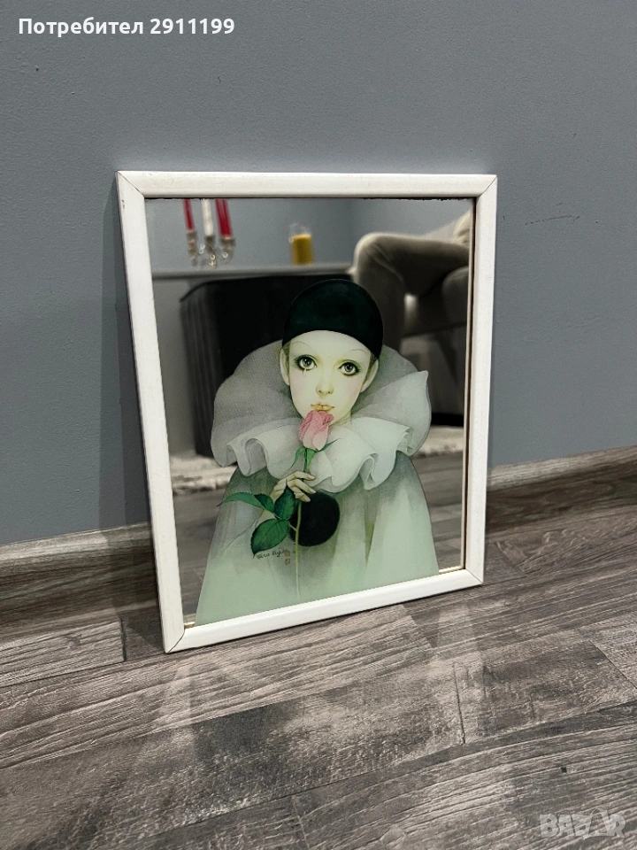 запазено огледало с картина на клоун.