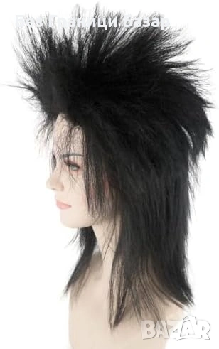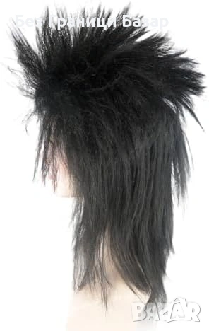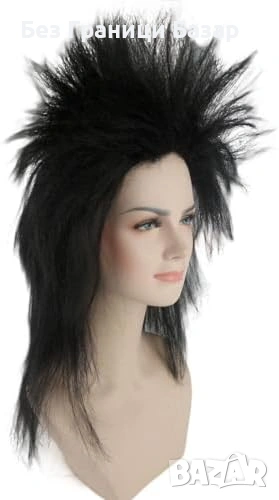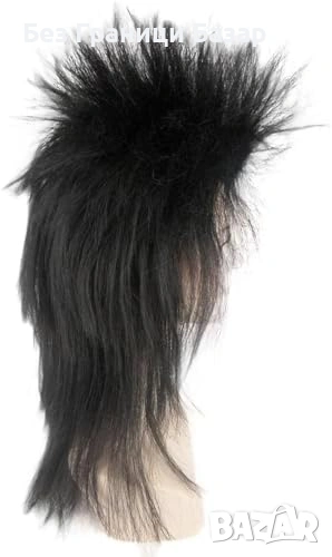 Черна рокерска перука с ефектен мулет стил и голям обем