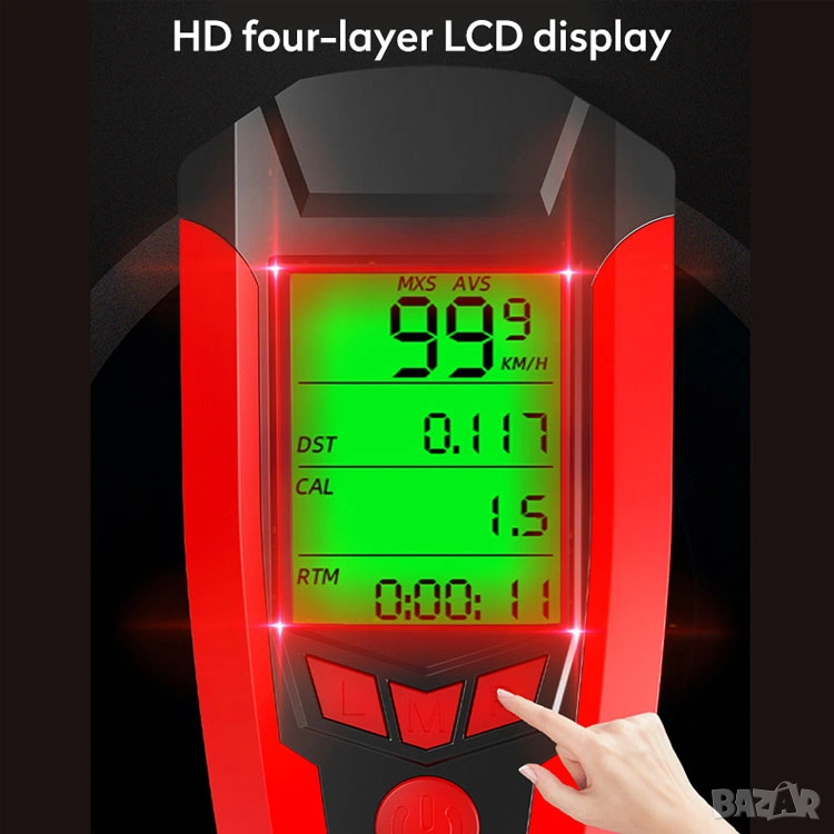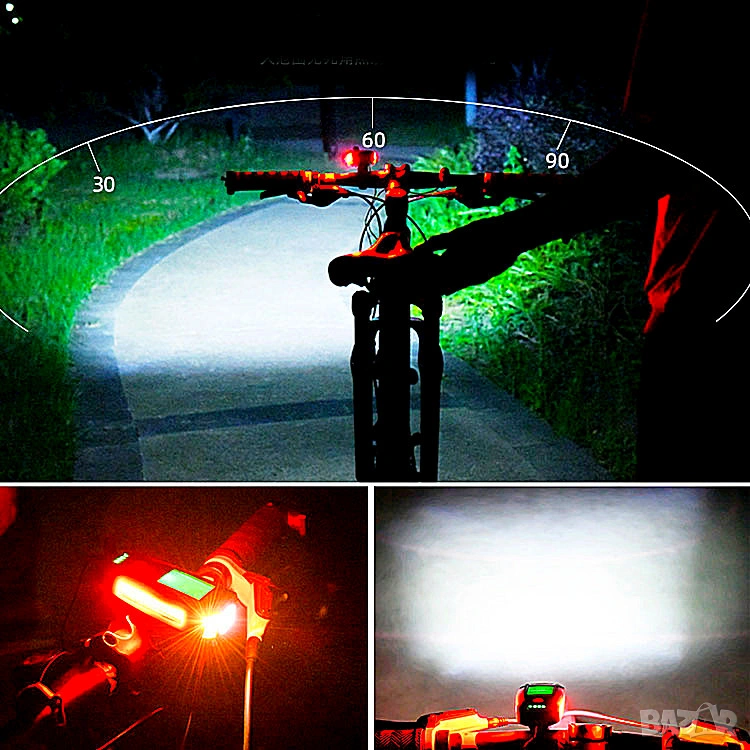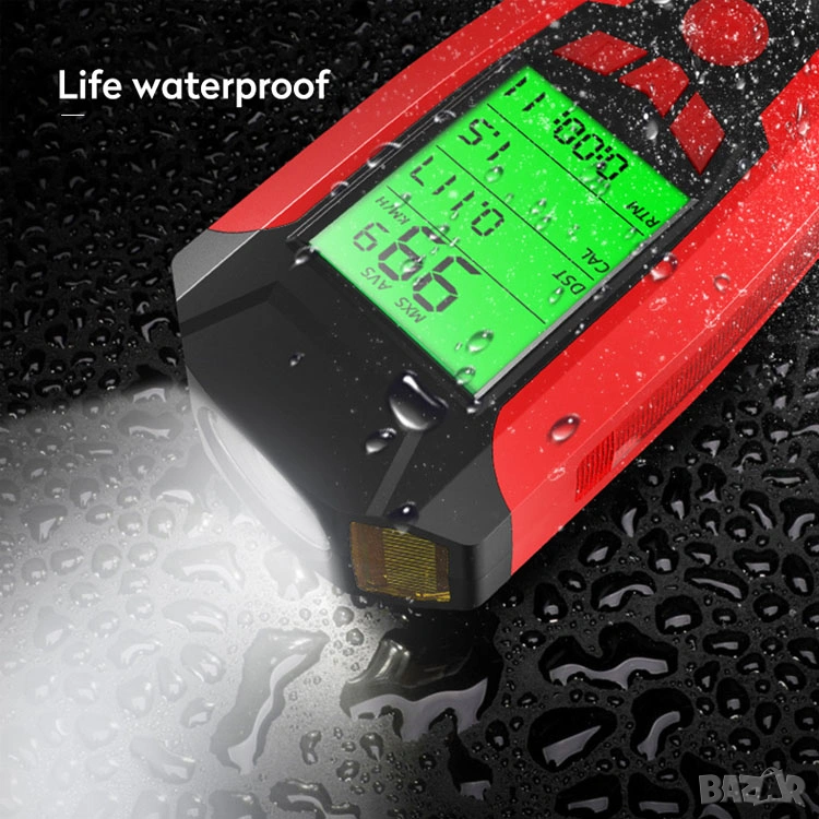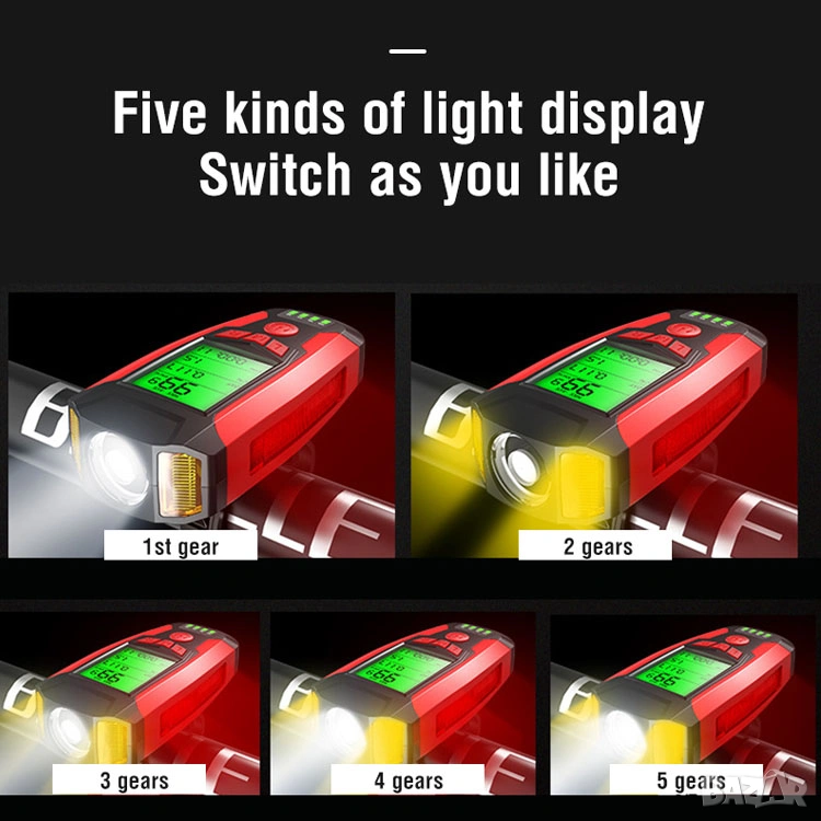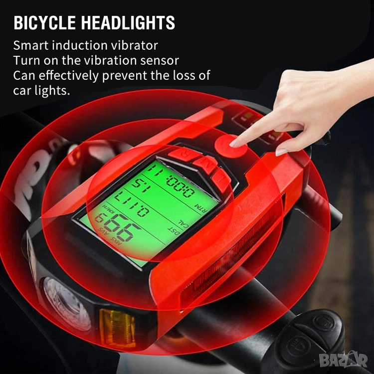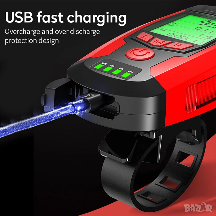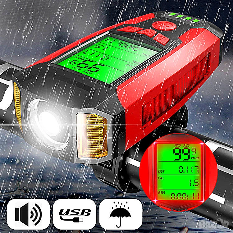 Фар за колело с километраж, фар за велосипед, презареждаем, компютър, сирена, клаксон, батерия
