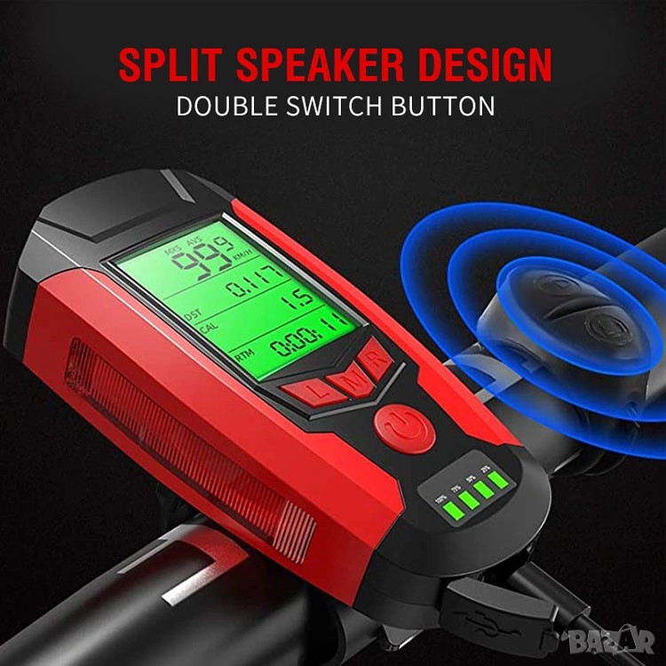 🚴♂️ Професионален 4 в 1 LED фар за велосипед с километраж, сирена и USB зареждане