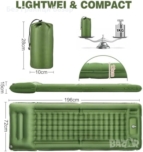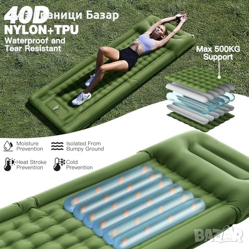 Надуваем къмпинг матрак с дебелина 10–12 см за по-удобен сън на открито
