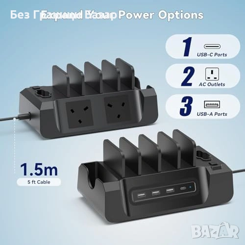 6-в-1 зарядна станция с 2 AC контакта, USB-A и USB-C портове