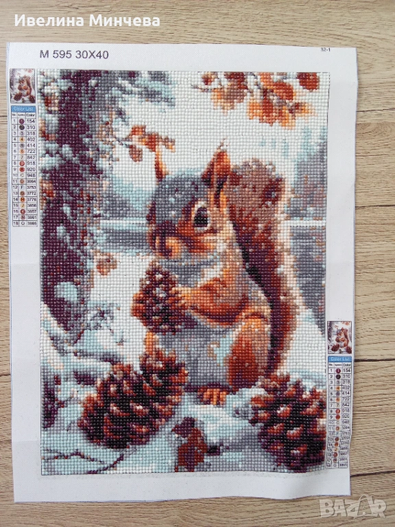 Гобленът е с размери 30 на 40, с кръгли диаманти, пълно облепване, обработен с лепило за фиксиране на камъчетата