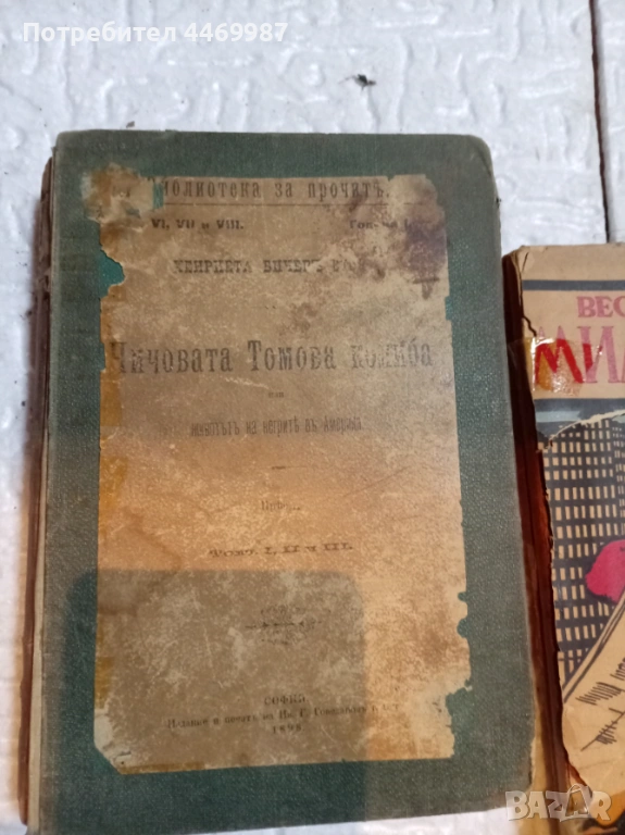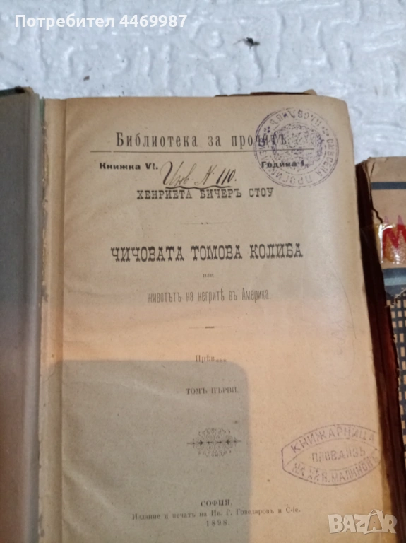 Това е антикварно издание на романа „Чичовата Томова колиба“ от Хенриета Бичер Стоу, отпечатано през 1898 година в София. Всички Томове