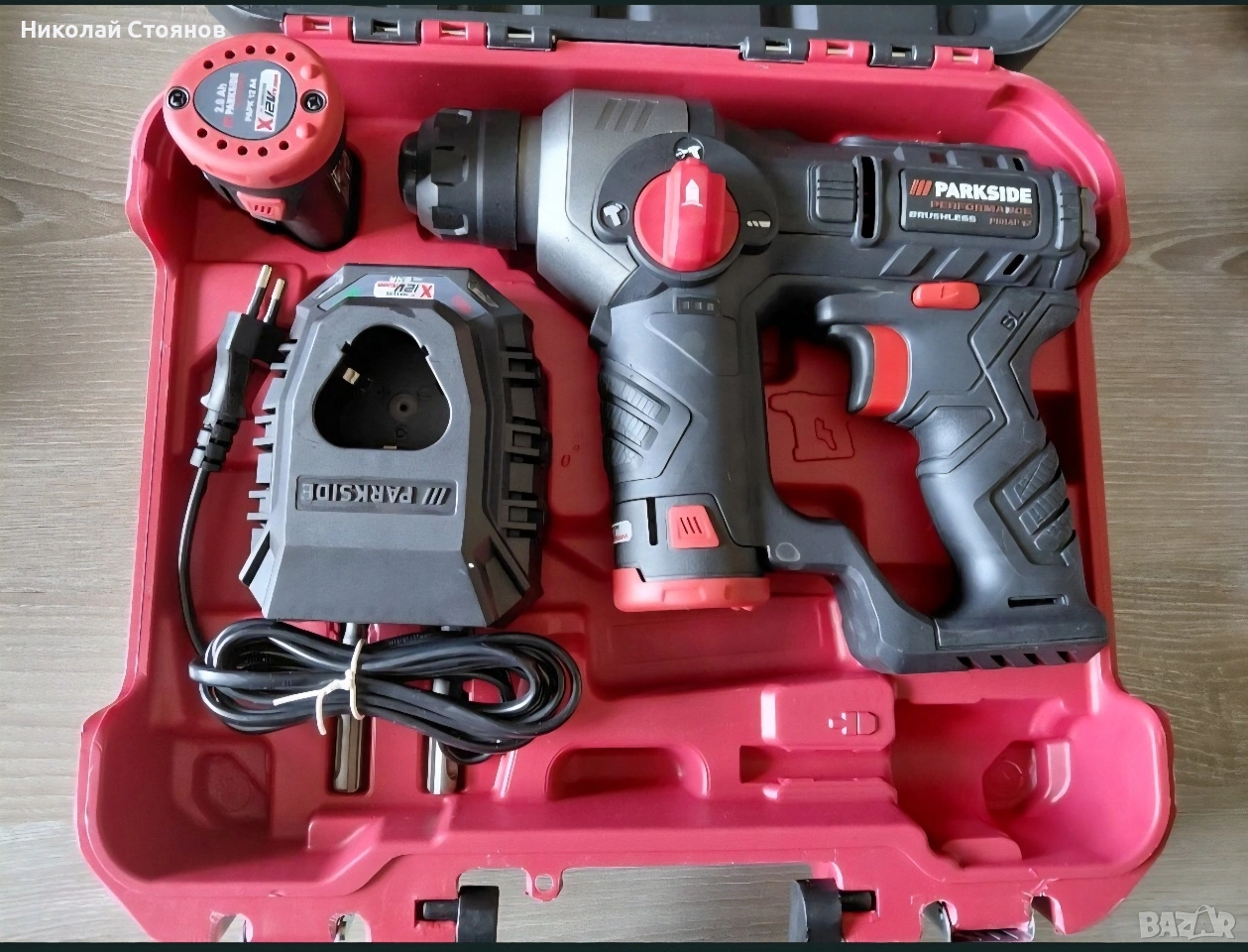 Акумулаторен перфоратор 12V Parkside Performance, безчетков мотор с две батерии и зарядно