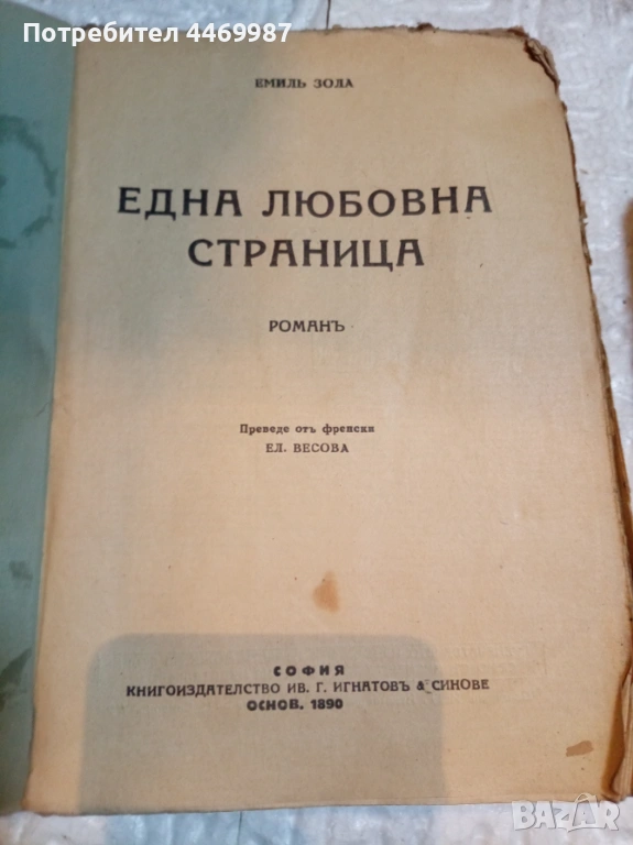 Това е антикварно издание на романа „Една любовна страница“ от Емил Зола.