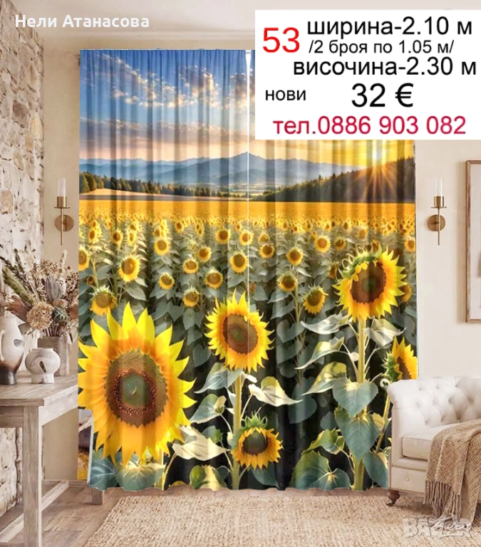 Завеси със слънчогледов пейзаж → Обява 54230726