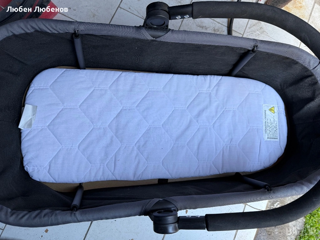 • Кош за новородено. С крачета и сгъваема дръжка. Към кошчето за новородено има матраче и протектор