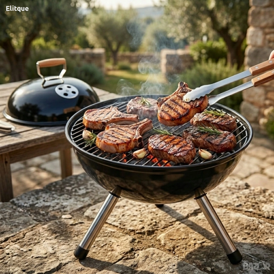 Технически характеристики на Туристическо барбекю на въглища с кълбовидна форма 37.5 x 45.5 см – компактно и преносимо за градина и къмпинг Основни технически данни за уверено и информирано ползване: Размери: диаметър 37,5 см, височина 45,5 см Материал: стоманен корпус с емайлово покритие Кракa: три стоманени крака с гумени накрайници за стабилност Капак: с вентилационен отвор за регулиране на въздуха Дръжка: дървена, за безопасно повдигане на горещия капак Подходящ за: градина, двор, тераса, къмпинг и пикник Категория: барбекю на въглища, преносимо барбекю, туристическа скара НЕ СА НАЛИЧНИ ЩЕ СЕ ПОРЪЧАТ СЛЕД КАТО СЕ СЪБЕРЕ 10 ПОРЪЧКИ