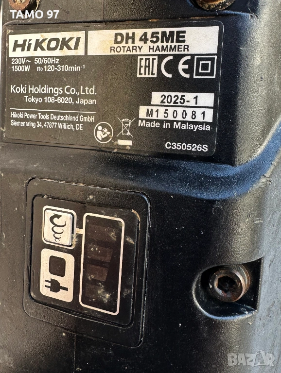 Продавам мощен безчетков комбиниран перфоратор Хикоки / Хитачи с електронно регулиране на мощността. Машината е в добро визуално състояние и работи перфектно без никакви странични шумове или проблеми. Малайзийско производство от 2025г, внос от Франция. Машината се продава така, както си е на снимките без куфар. Пращаме с опция преглед и тест с куриерска фирма еконт може и лично предаване за гр. Шумен. Магазинската цена е: 948евро