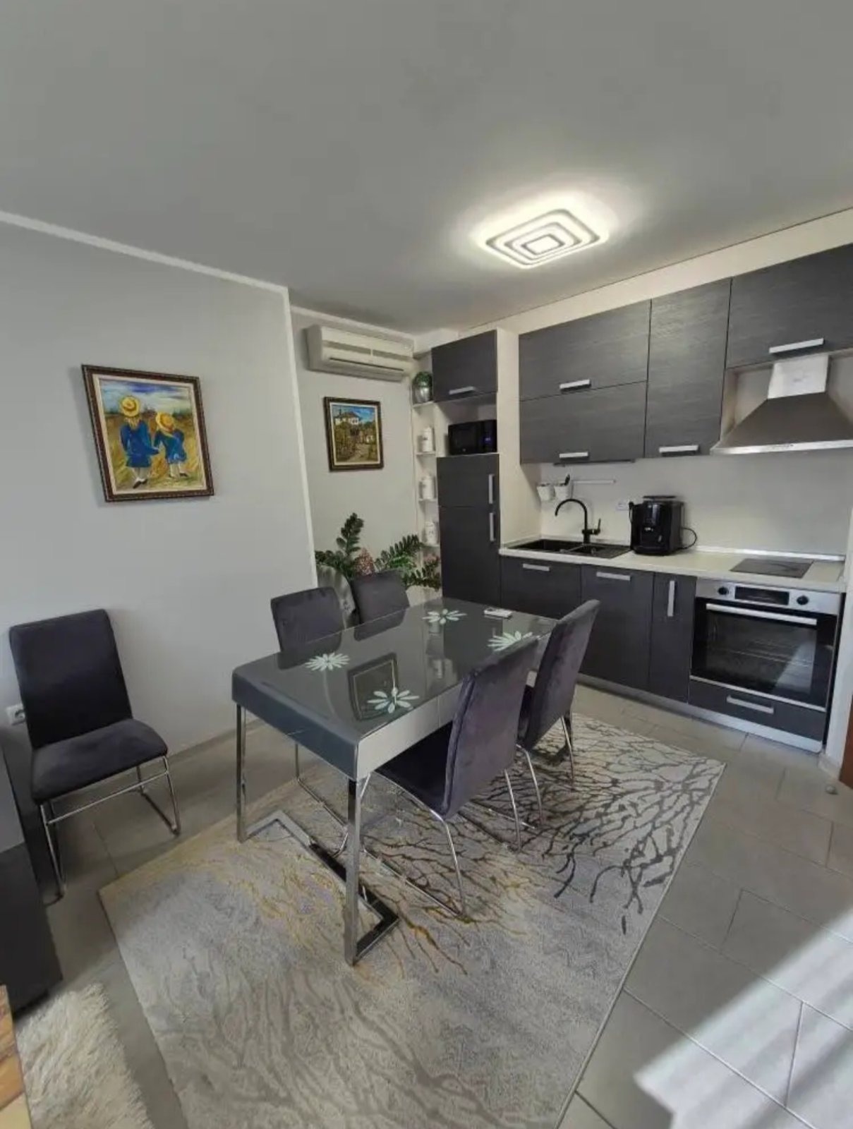 ✅ Дневна с трапезария и кухненски бокс: вграден хладилник, миялна машина, фурна и котлони.