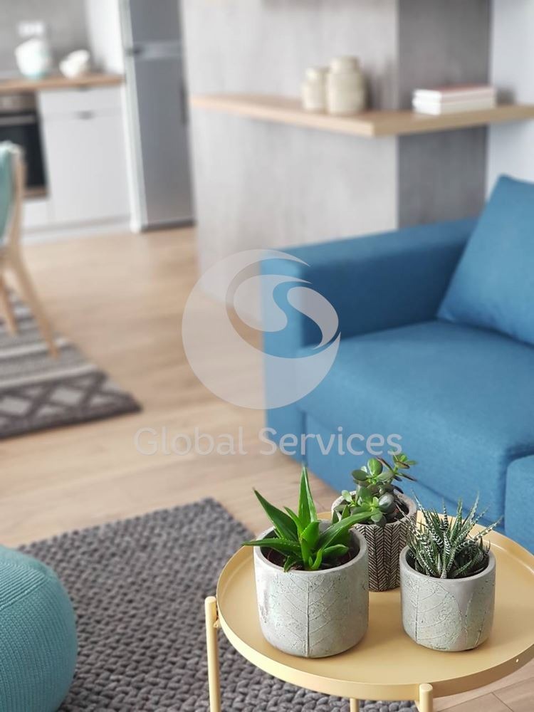 Слънчев и уютен тристаен апартамент, разположен в близост до УНСС. Разполага с две спални, хол и кухненски бокс, баня с тоалетна и тераса. Обзаведен с нови мебели, пералня, сушилня, миялна и телевизор. Сградата е с контрол на достъпа и постянно видеонаблюдение.
