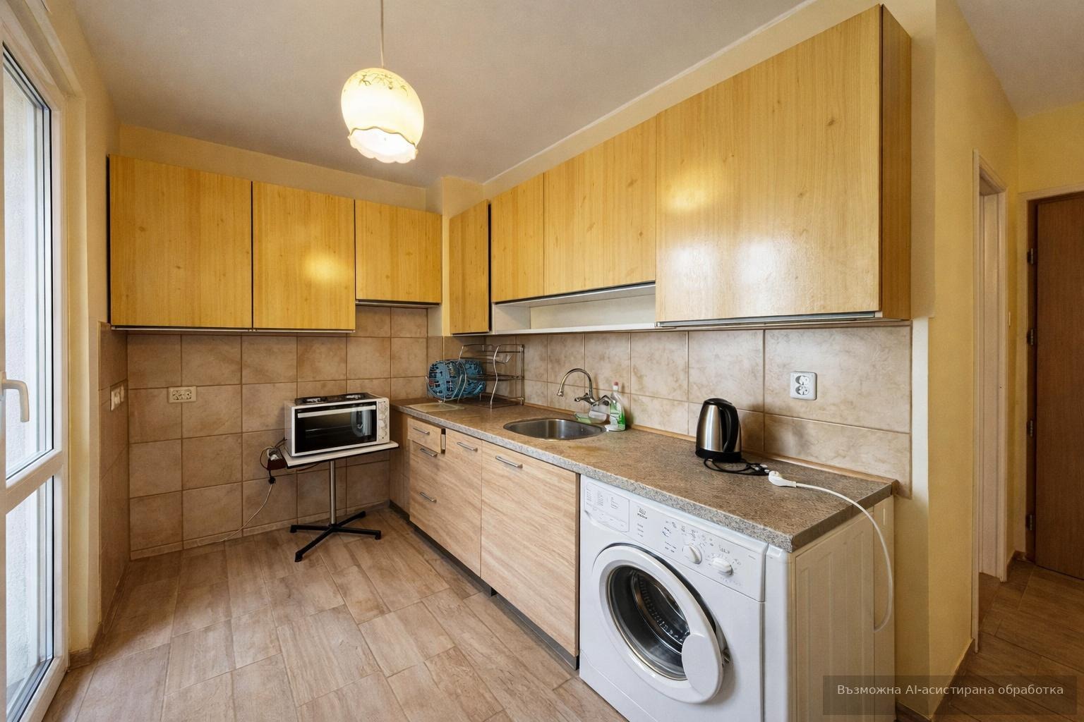 Обзаведено и оборудвано с централно отопление (ТЕЦ) и климатик, имотът гарантира удобство и функционалност. Сред допълнителните предимства са денонощна охрана и интернет окабеляване. Месечният наем е 500 EUR.