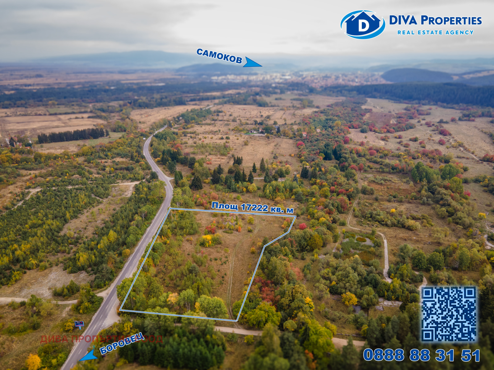 Агенция за недвижими имоти ДИВА Пропъртис има удоволствието ексклузивно да представи на Вашето внимание за продажба хубав инвестиционен парцeл разположен на главен път Самоков- Боровец, на по 3-4 км от най-стария и автентичен курорт Боровец и град с традиции и богата история - Самоков.