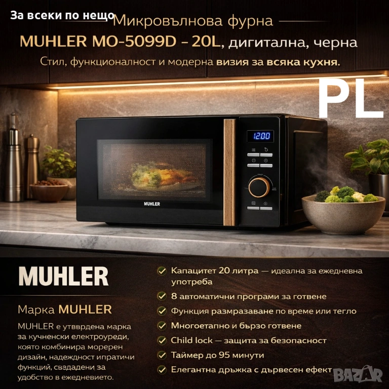 Микровълнова фурна MUHLER MO-5099D 20L,черна, дигитална Код P2230
