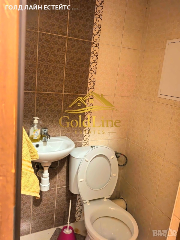 баня с душ кабина, тоалетна, мивка и бойлер