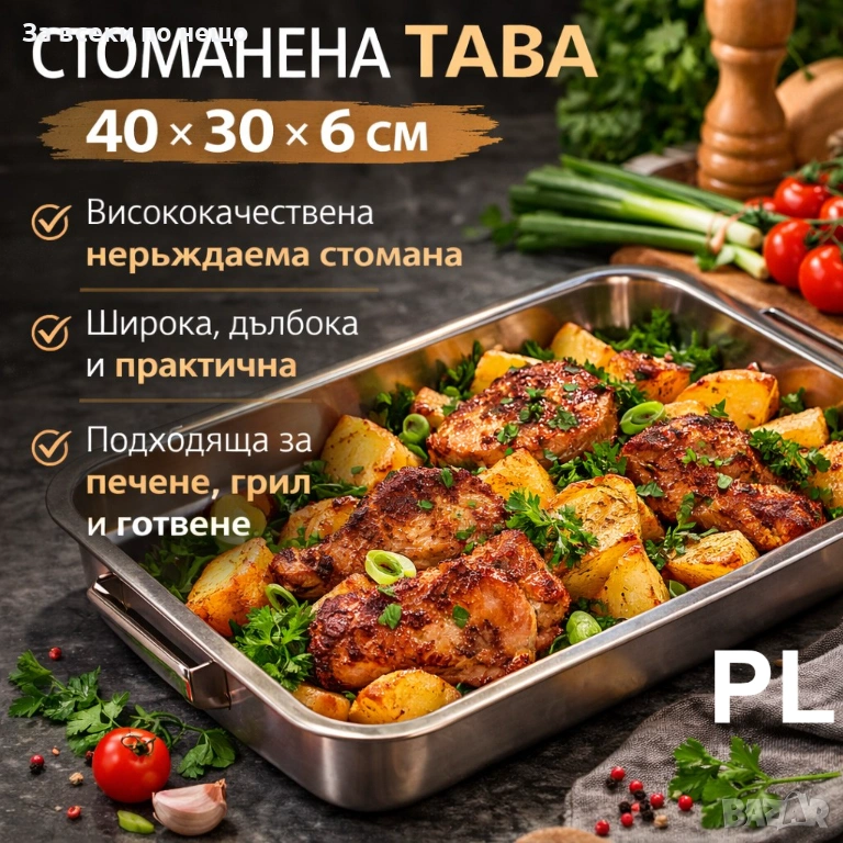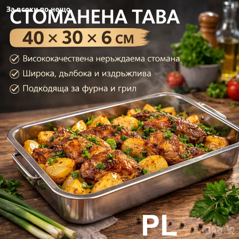 Практична и здрава стоманена тава за печене с размер 40 × 30 × 6 см, подходяща за приготвяне на месо, картофи, зеленчуци и различни ястия във фурна или на грил. Изработена е от висококачествена неръждаема стомана, която осигурява равномерно разпределение на топлината и отлични резултати при готвене.