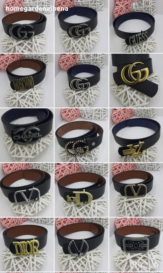 Стилни дамски колани от висококачествена еко кожа с ефектни метални катарами в разнообразни дизайни. Гладка повърхност с фина текстура, мека и издръжлива структура. Стандартна ширина 3.5 см — подходящи за панталони, дънки и рокли с колан.