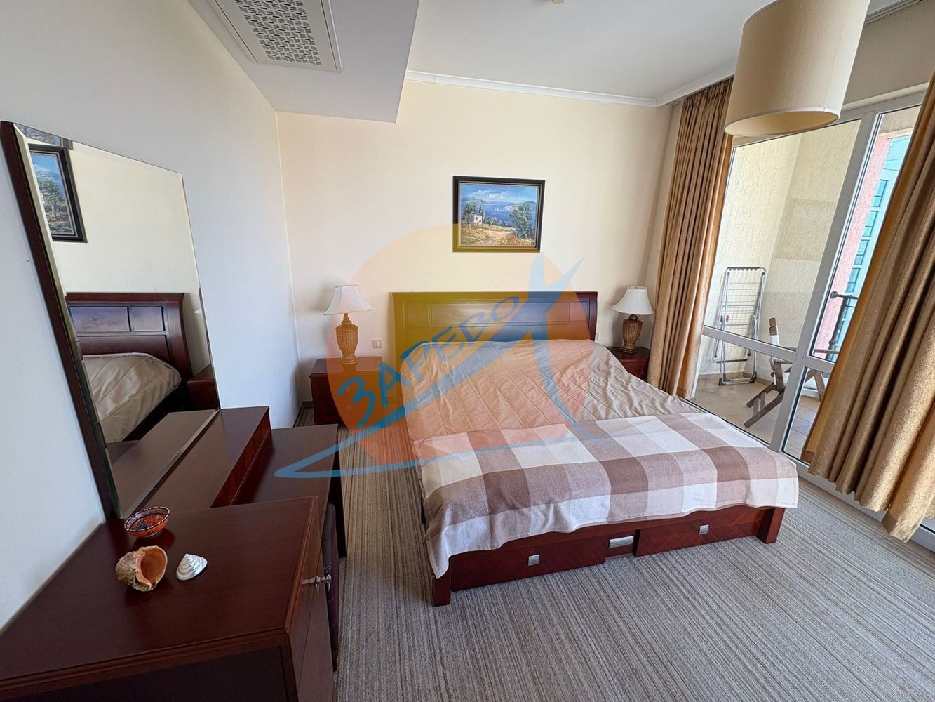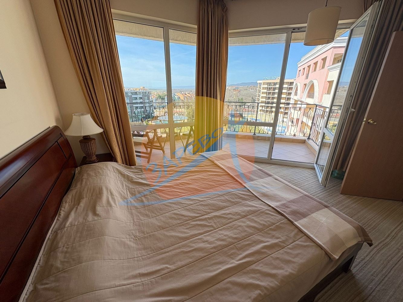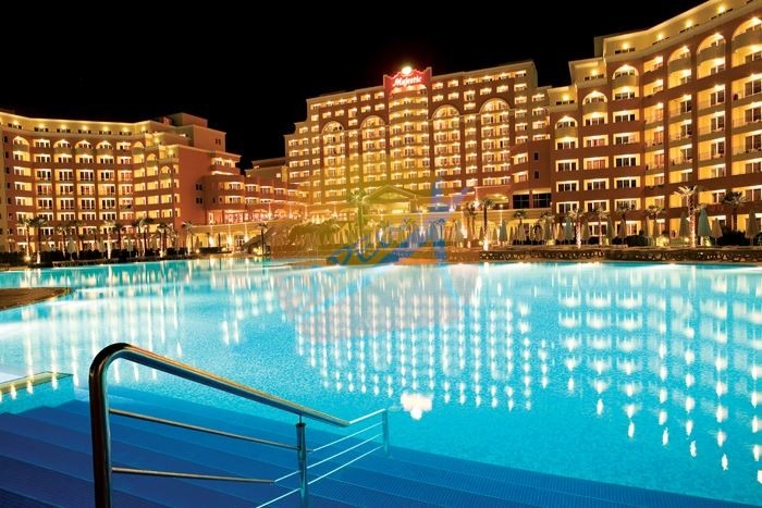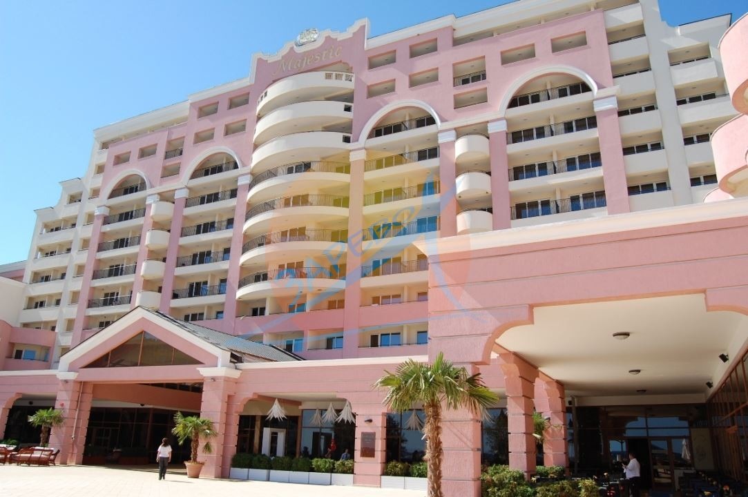 Маджестик Бийч Резорт (Majestic Beach Resort), Слънчев бряг, първа линия. Светъл oбзаведен двустаен апартамент, разположен на 7-ми етаж, с площ от 83 кв. м. Състои се от хол с кухненски бокс, спалня, баня с тоалетна с вана, тераса с гледка към територията на комплекса. Апартаментът се продава обзаведен, готов за ползване.Такса поддръжка: 12 на кв.м. за година.Оферта: 2120Без комисиона от купувача.Комплекс Маджестик има директен достъп до плажа - намира се на реална първа линия море!Построен изключително качествено. Разполага с големи открити басейни, ресторант, бар и рецепция.На територията има и влиза в такса подръжка:Открити басейниРесторантиMaгазинЗанимални за децаПодземен паркингМаджестик e елегантен, луксозен и модерен комплекс от затворен тип, предлагащ отпускаща и в същото време изискана атмосфера перфектната комбинация между модерен лайфстайл, домашен уют и предразполагаща гостоприемност. Локацията е отлична на първа линия море, във ВИП северната зона на курорта Слънчев бряг.Инфраструктура и удобства в комплекса:4 ресторанта;4 бара;басейн-зона;детска зона;зона за спорт;СПА център;бизнес център;Мини голф,игрална зала за възрастни;паркова зона;паркинг.Комплексът разполага със собствена плажна зона с шезлонги и чадъри.За клиентите на Зарево България АД Юридическа проверка и подготовка на документите, съпътстващи сделката, представляваме Ви при покупката или продажбата пред нотариус (включително дистанционно).