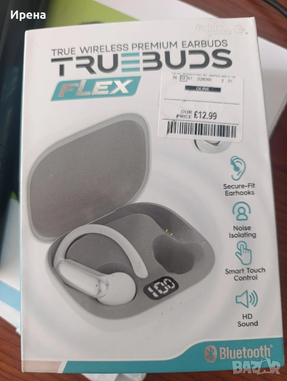 Безжичните слушалки Gabba Goods TrueBuds Flex са напълно нови и идват с удобна гъвкава конструкция. С тях можете да се насладите на качествен звук и свобода на движение без дразнителни кабели. Идеални са за спорт и ежедневно ползване.Те са проектирани за спорт и активен начин на живот, като се отличават със специфичния си дизайн с кукички за здраво закрепване около ухото.
