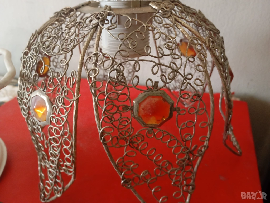 Посребрен метален абажур,декориран с камъчета.