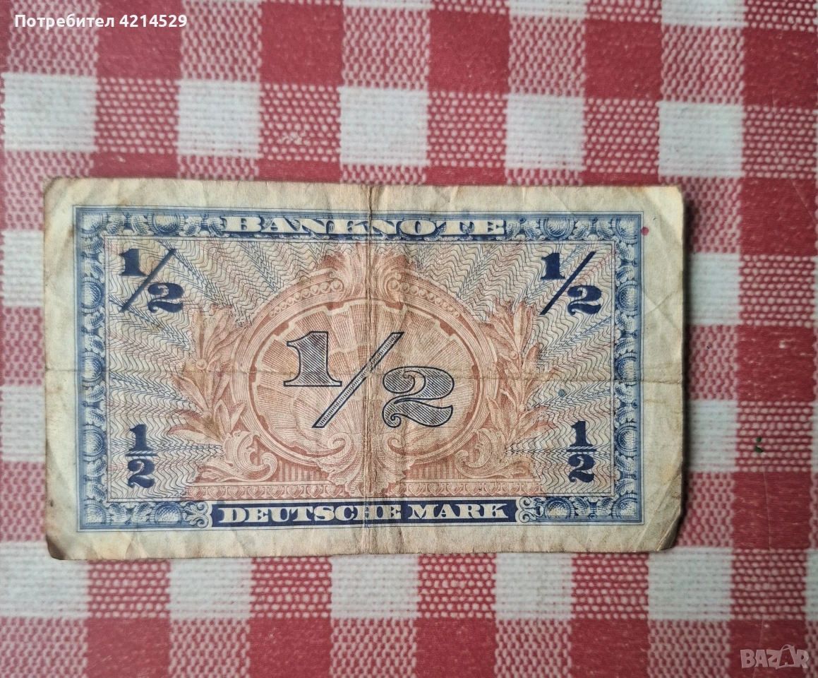 Банкнота от 1/2 германска марка (Deutsche Mark), емитирана през 1948 г.
