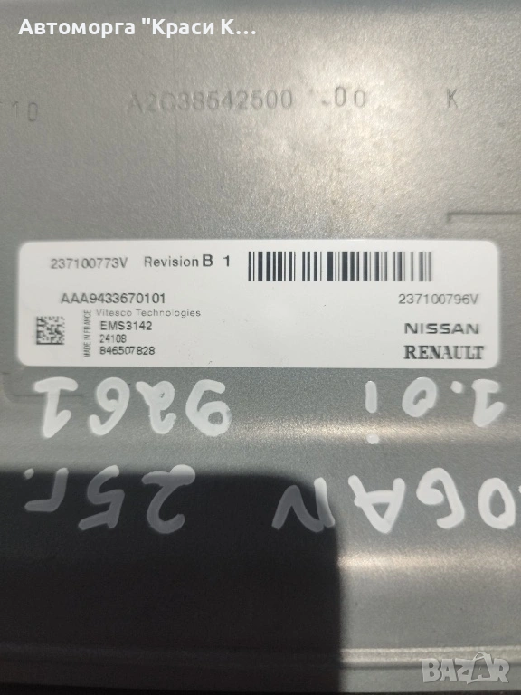 237100773V компютър за двигател на Дачия Логан Dacia Logan 2025г 1.0TCE 101к код на двигател H4DF в автоморга KRASI CAR, преди с. Кичево гр. Варна. ВСИЧКИ ЦЕНИ СА С ВКЛЮЧЕНО ДДС. ВСИЧКИ ЧАСТИ СА С 14 ДНИ ПРАВО НА ВРЪЩАНЕ. Изпращане на части чрез наложен платеж с куриер за цялата страна, получаване на следващият ден. Доставката е за сметка на КУПУВАЧА. Издаване на удостоверение за бракуване пред КАТ. РАБОТНО ВРЕМЕ ОТ ПОНЕДЕЛНИК ДО ПЕТЪК от 9.00 ч. до 18.00 ч., СЪБОТА ОТ 9.00 ч. ДО 14.00 ч., ПОЧИВЕН ДЕН НЕДЕЛЯ.За контакти: 0877757681