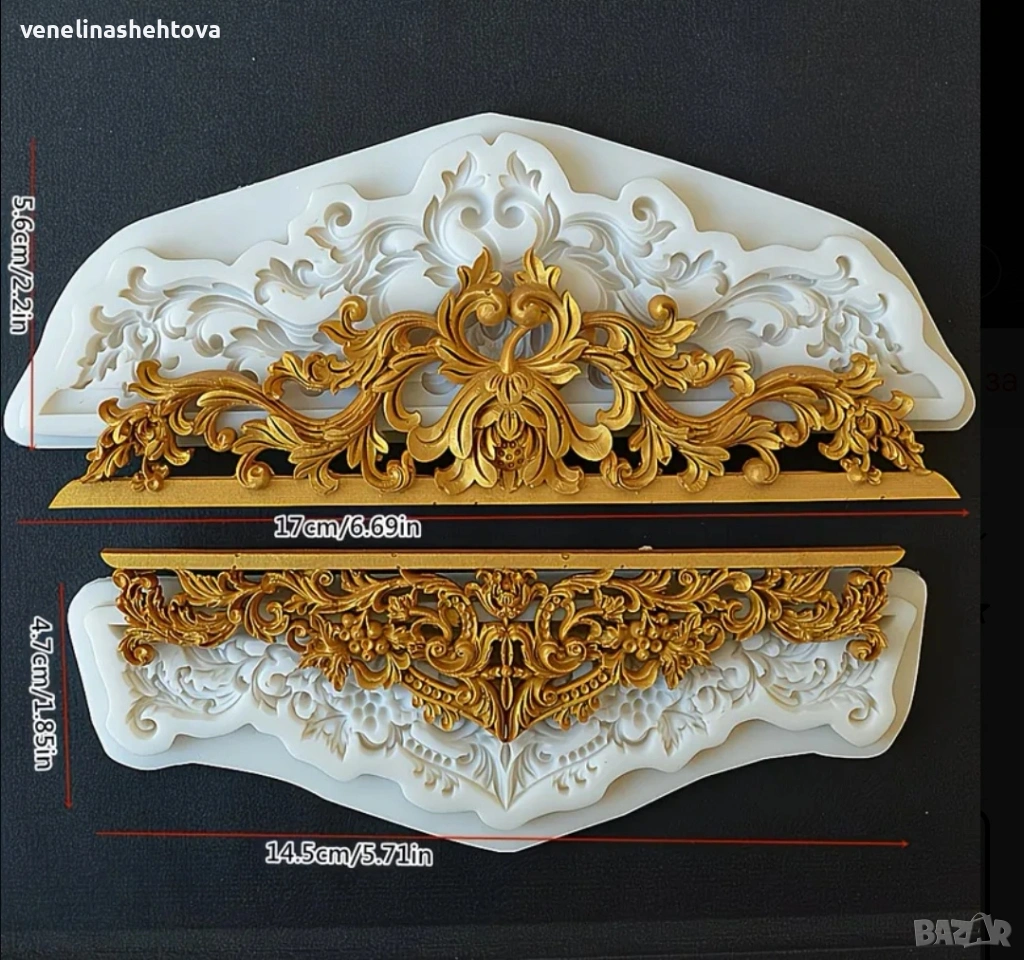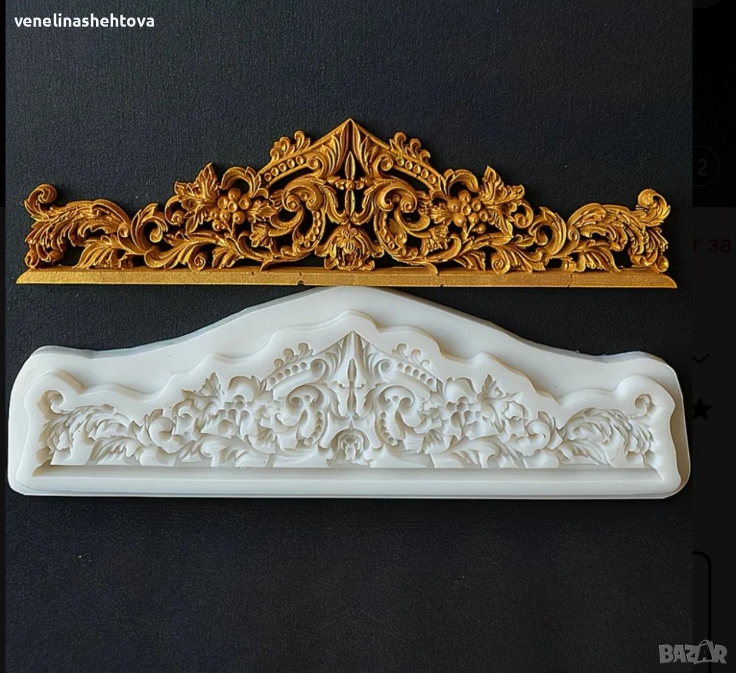 Релефна дантела бароков орнамент силиконов молд форма гипс смола фондан декорация на торта → Обява 54233458