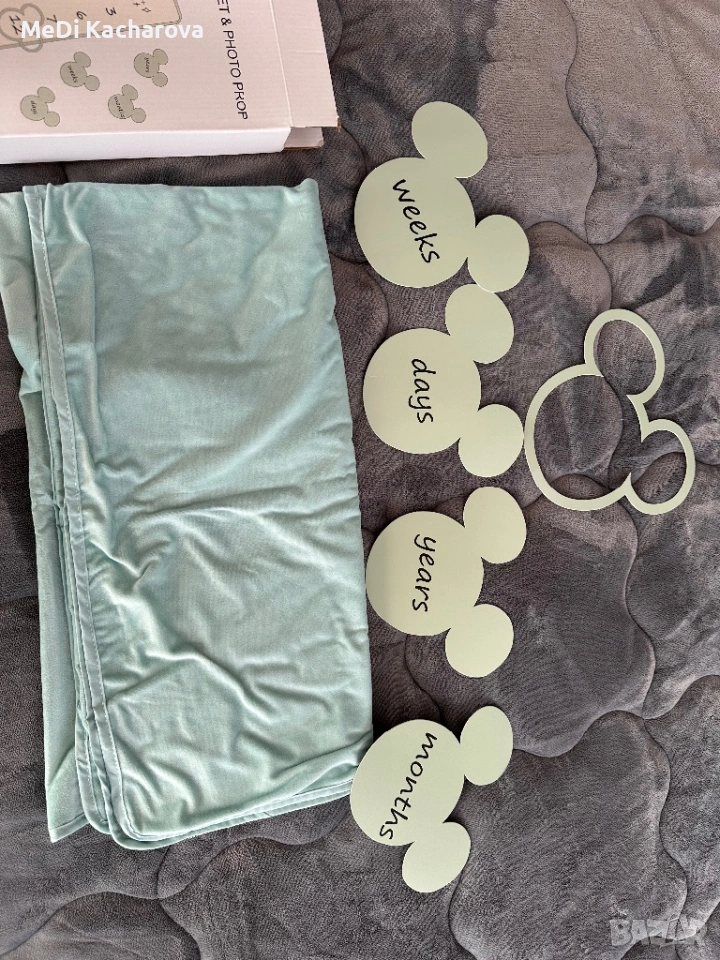 Одеяло да снимки. Пиша одеяло, защото е приятна материя и може да се използва и за одеялце. Аз съм го използвала само за снимки до 1г
