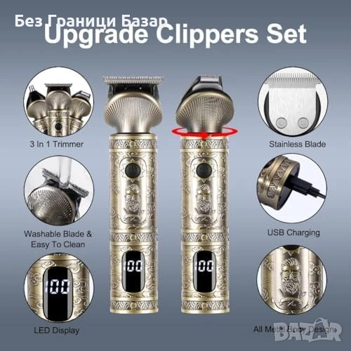 Професионален комплект за подстригване с машинка, T-blade тример, прецизен тример и тример за нос