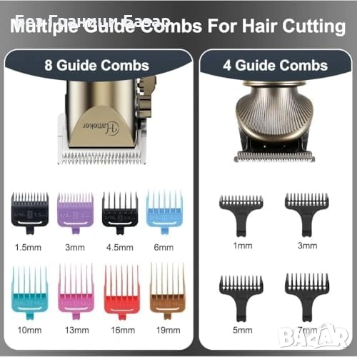 Включва 8 гребена за машинката и 4 гребена за T-blade тримера