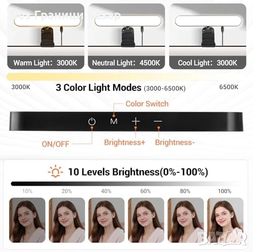 Нова видео Настолна LED селфи лампа за лаптоп телефон и стрийминг 3 режима 10 яркости